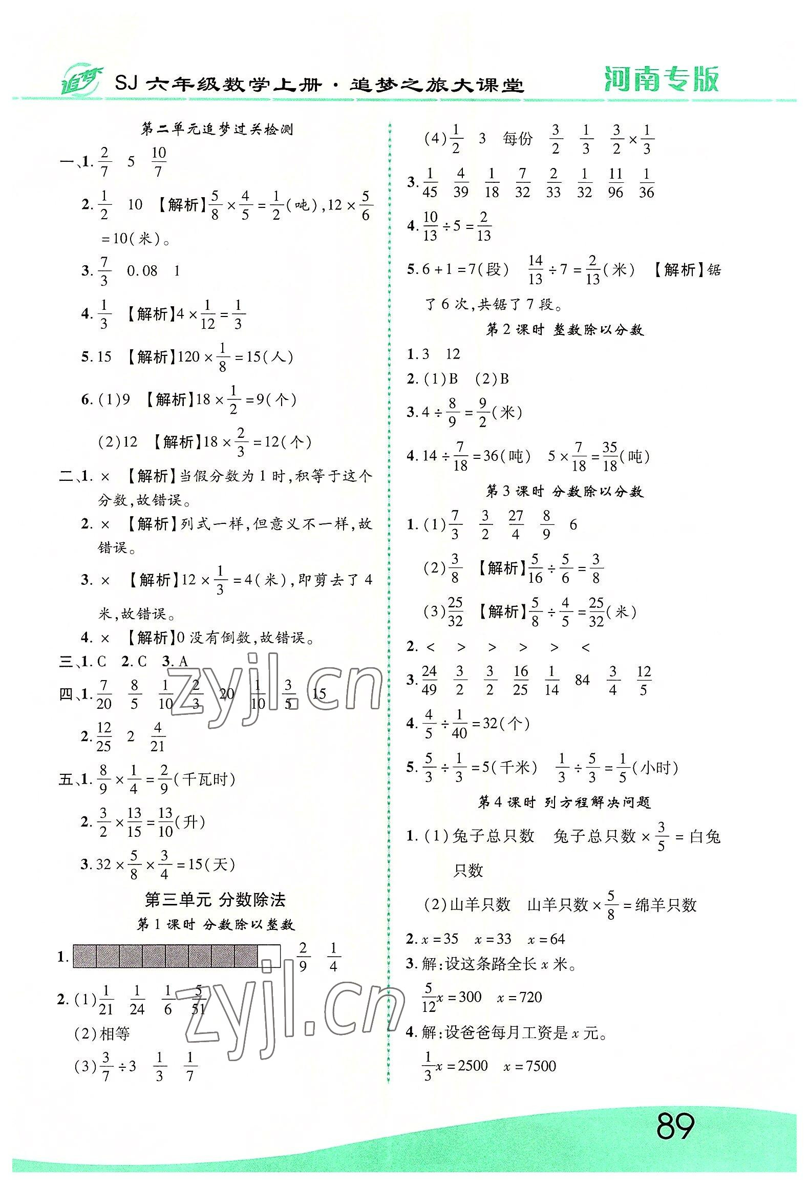 2022年追梦之旅大课堂六年级数学上册苏教版河南专版