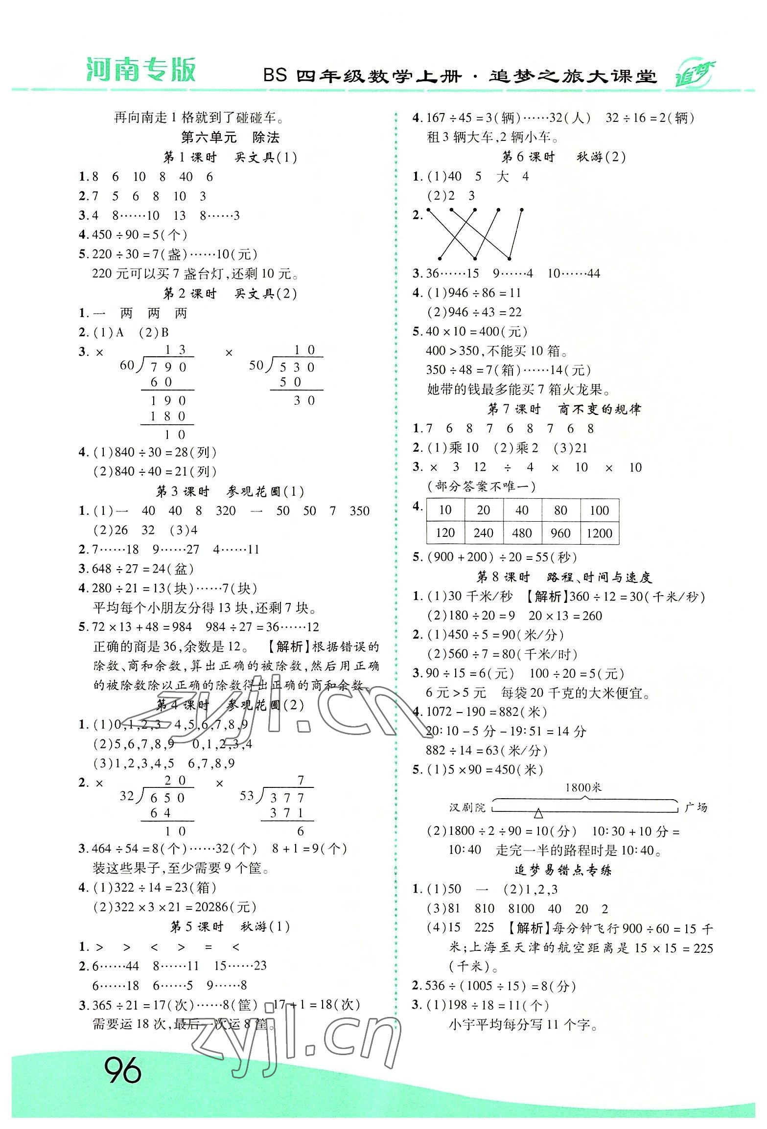 2022年追梦之旅大课堂四年级数学上册北师大版河南专版