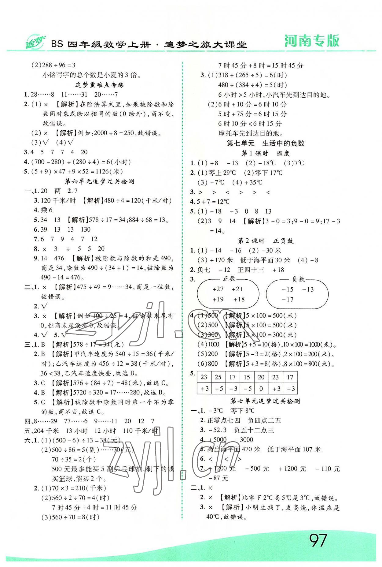 2022年追梦之旅大课堂四年级数学上册北师大版河南专版