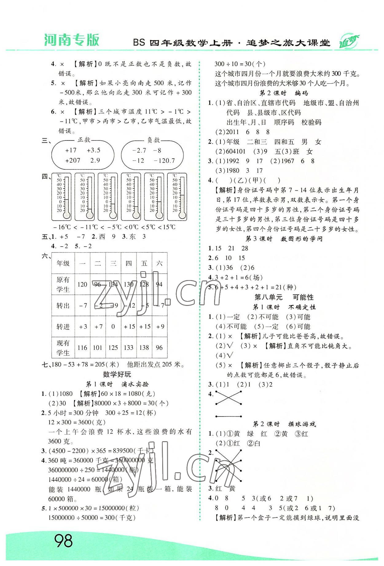 注:目前有些书本章节名称可能整理的还不是很完善,但都是按照顺序排列的,请同学们按照顺序仔细查找。练习册 2022年追梦之旅大课堂四年级数学上册北师大版河南专版 答案主要是用来给同学们做完题方便对答案用的,请勿直接抄袭。