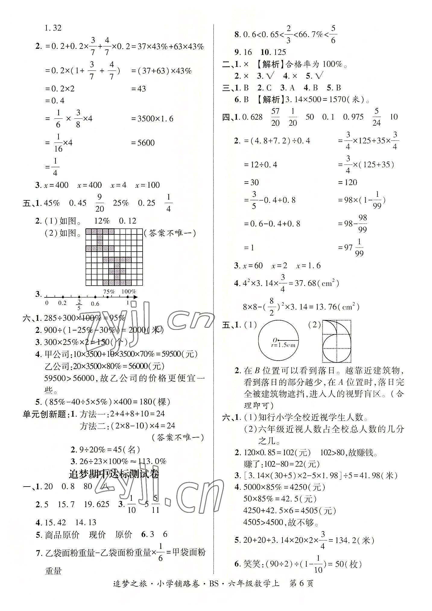 注:目前有些书本章节名称可能整理的还不是很完善,但都是按照顺序排列的,请同学们按照顺序仔细查找。练习册 2022年追梦之旅铺路卷六年级数学上册北师大版河南专版 答案主要是用来给同学们做完题方便对答案用的,请勿直接抄袭。