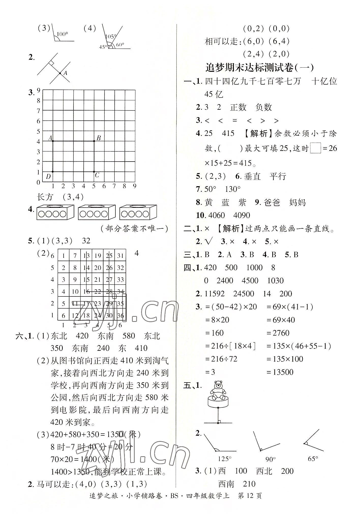 注:目前有些书本章节名称可能整理的还不是很完善,但都是按照顺序排列的,请同学们按照顺序仔细查找。练习册 2022年追梦之旅铺路卷四年级数学上册北师大版河南专版 答案主要是用来给同学们做完题方便对答案用的,请勿直接抄袭。