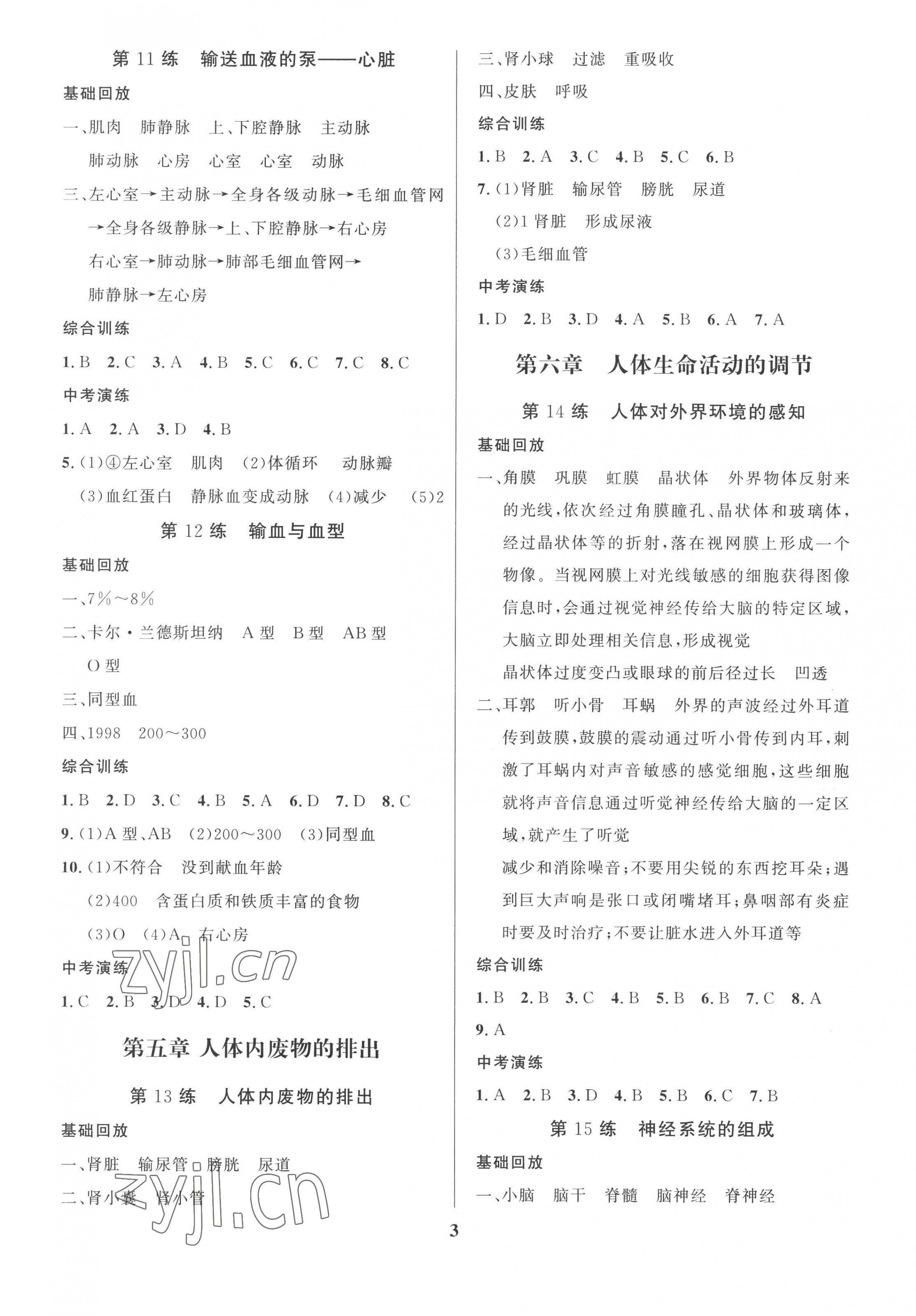 2022年鑫浪传媒给力100暑假作业七年级生物