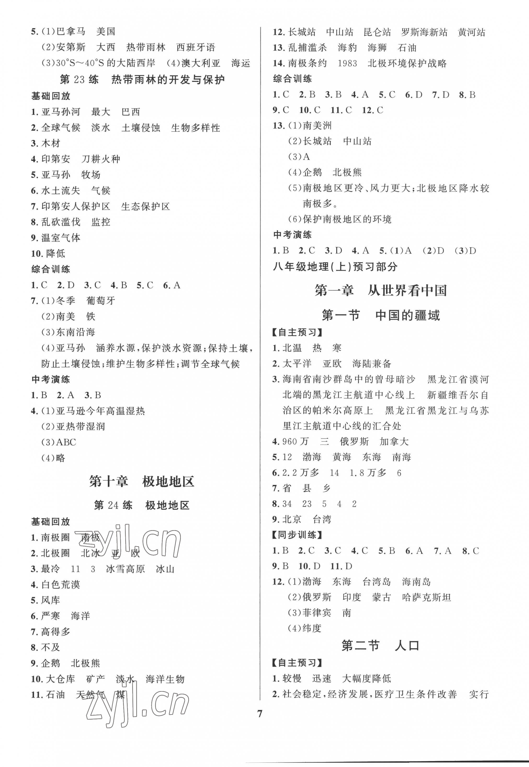 2022年鑫浪传媒给力100暑假作业七年级地理