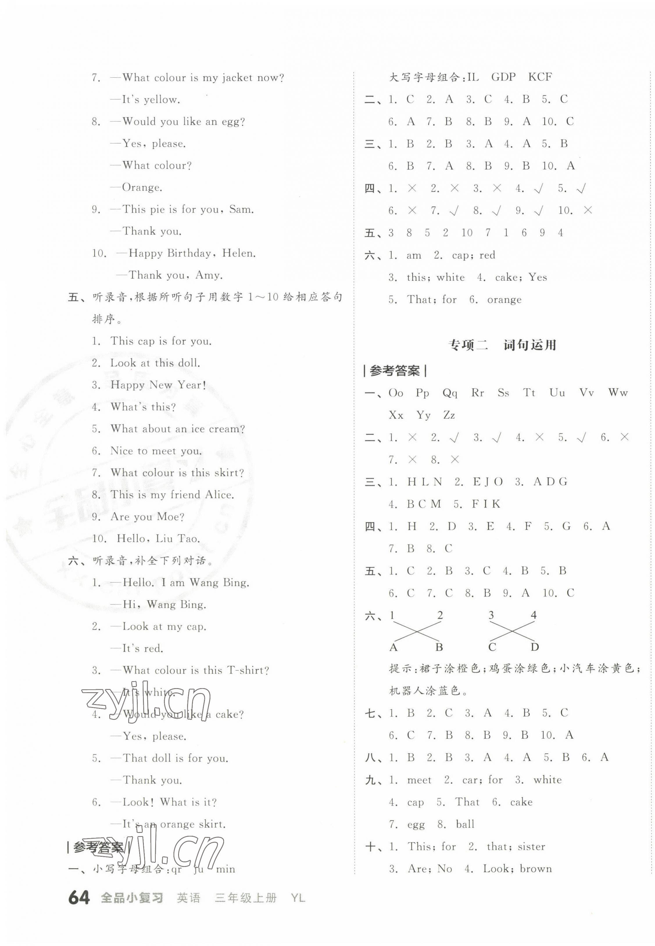 注:目前有些书本章节名称可能整理的还不是很完善,但都是按照顺序排列的,请同学们按照顺序仔细查找。练习册 2022年全品小复习三年级英语上册译林版 答案主要是用来给同学们做完题方便对答案用的,请勿直接抄袭。