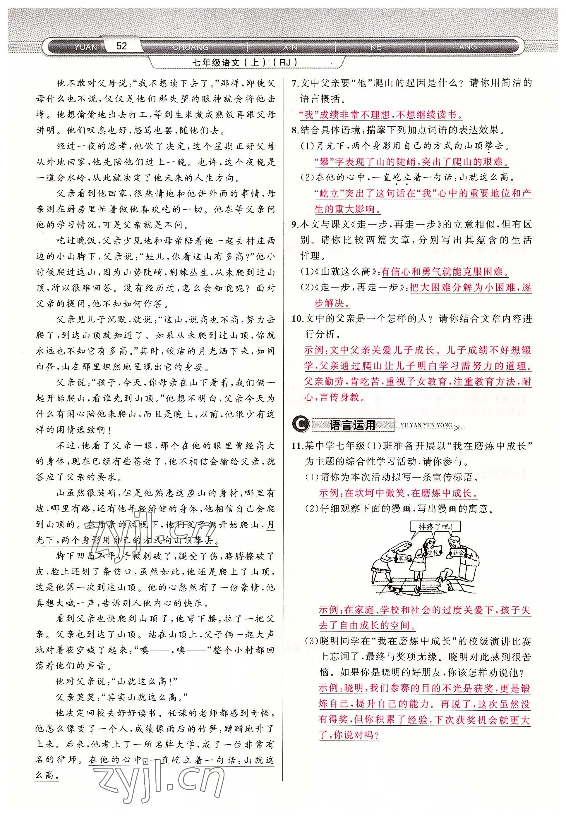 2022年原创新课堂七年级语文上册人教版四川专版