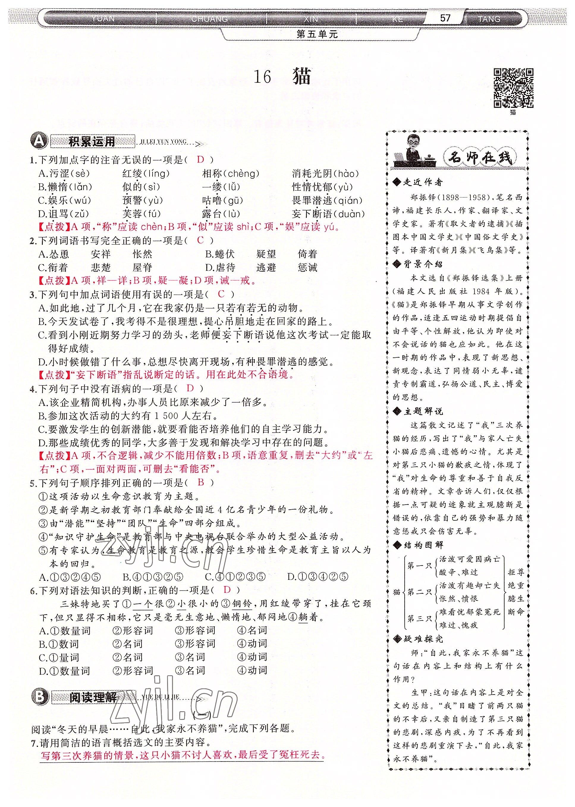 注:目前有些书本章节名称可能整理的还不是很完善,但都是按照顺序排列的,请同学们按照顺序仔细查找。练习册 2022年原创新课堂七年级语文上册人教版四川专版 答案主要是用来给同学们做完题方便对答案用的,请勿直接抄袭。