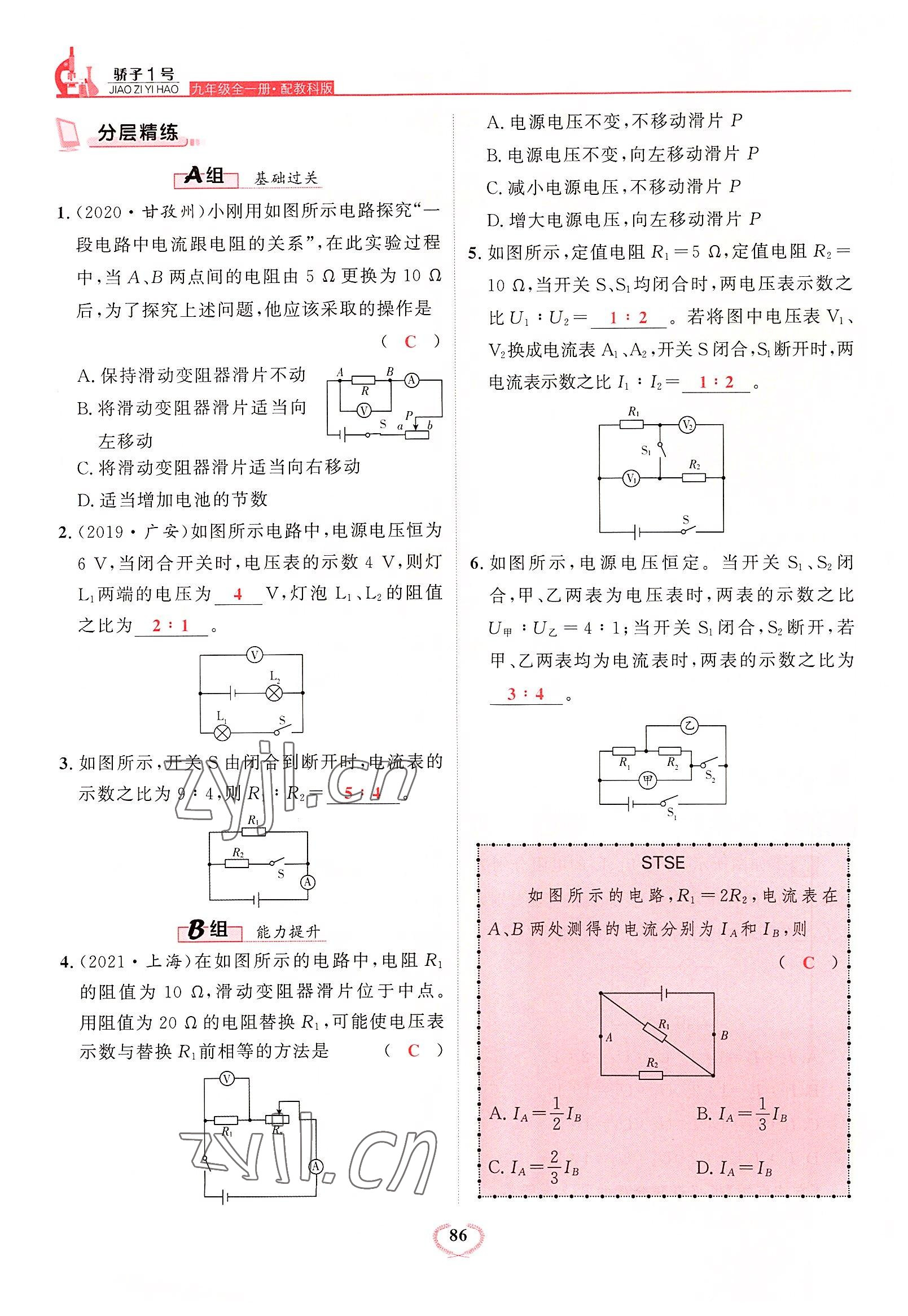 注:目前有些书本章节名称可能整理的还不是很完善,但都是按照顺序排列的,请同学们按照顺序仔细查找。练习册 2022年骄子1号九年级物理全一册教科版 答案主要是用来给同学们做完题方便对答案用的,请勿直接抄袭。
