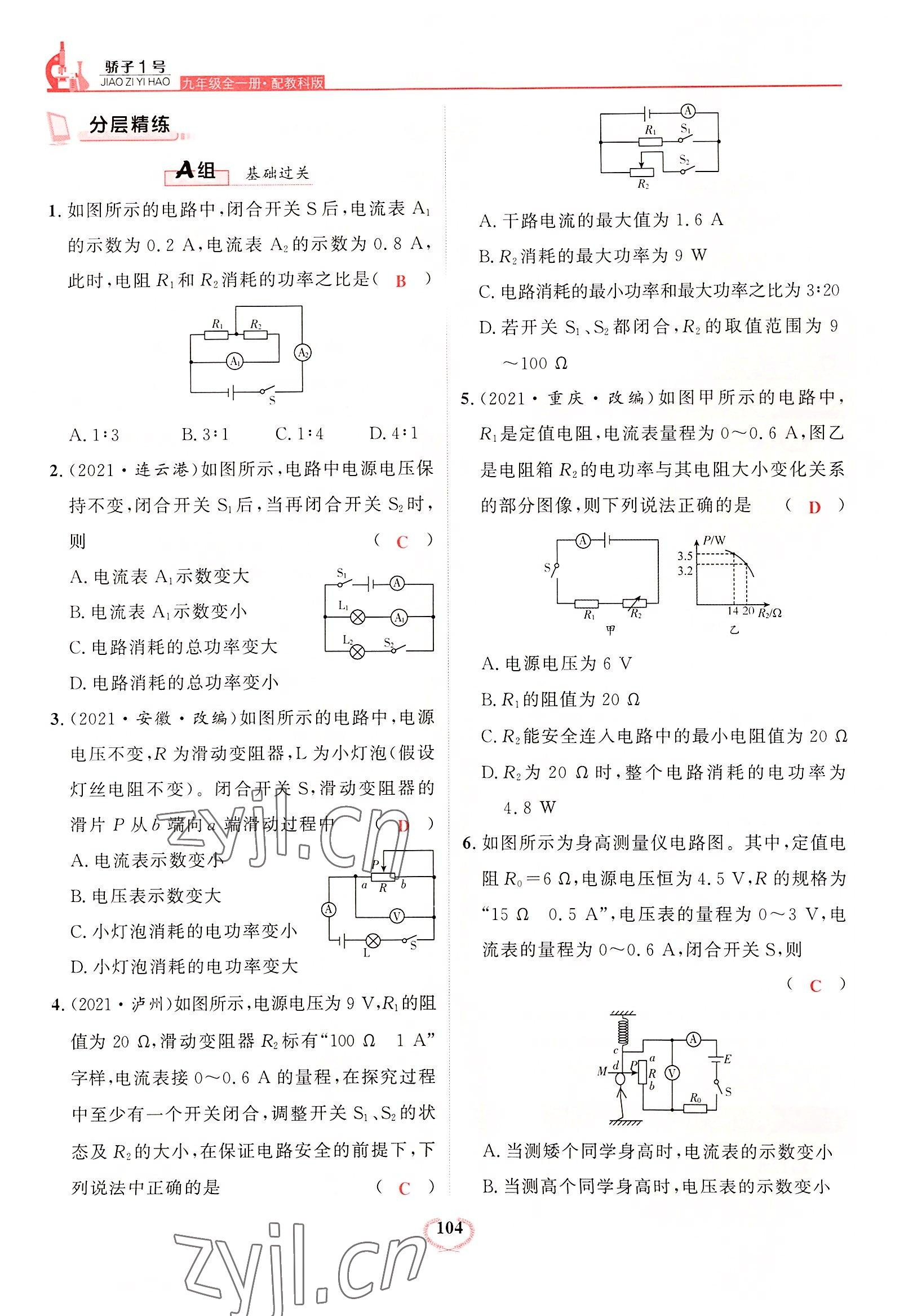 注:目前有些书本章节名称可能整理的还不是很完善,但都是按照顺序排列的,请同学们按照顺序仔细查找。练习册 2022年骄子1号九年级物理全一册教科版 答案主要是用来给同学们做完题方便对答案用的,请勿直接抄袭。