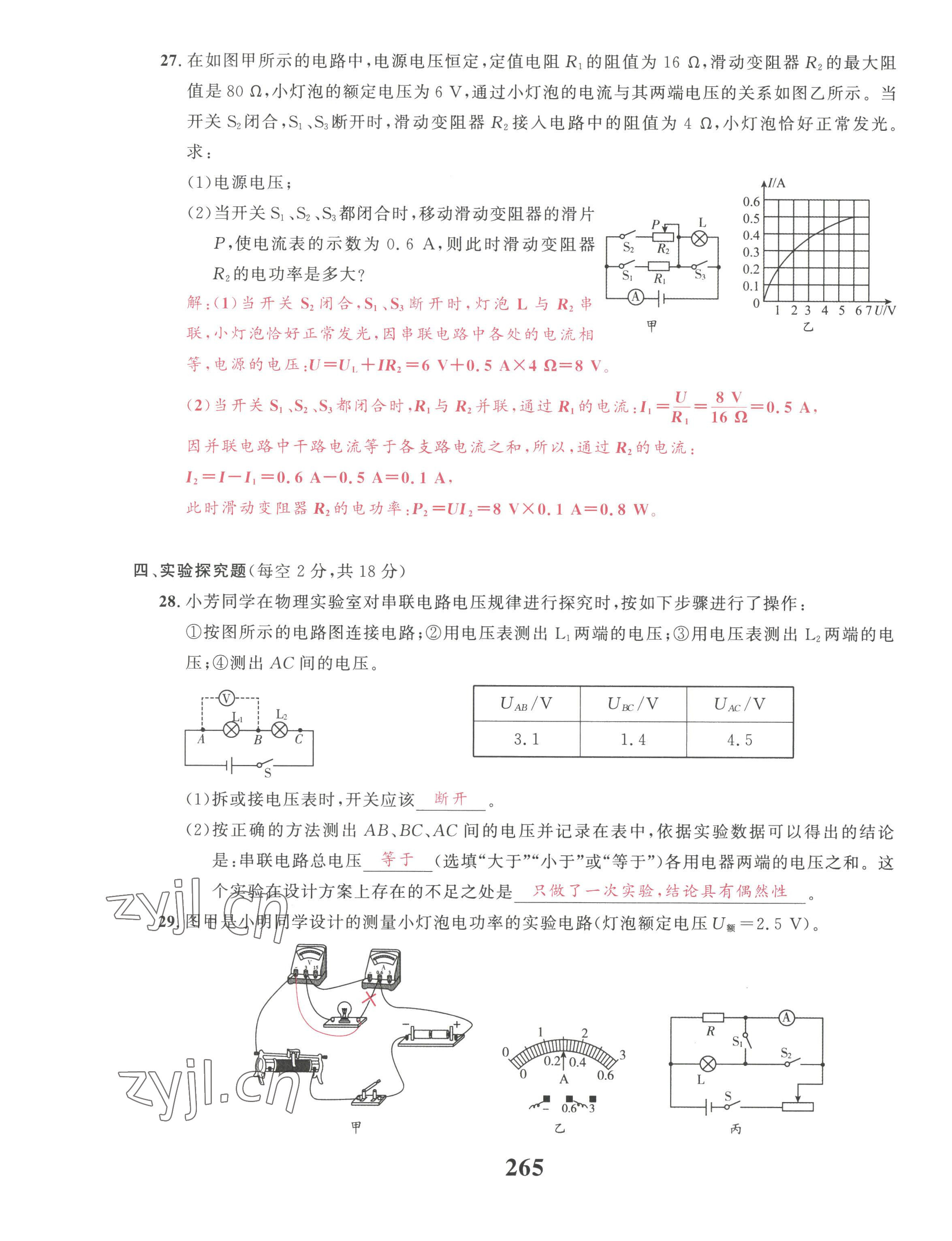 注:目前有些书本章节名称可能整理的还不是很完善,但都是按照顺序排列的,请同学们按照顺序仔细查找。练习册 2022年骄子1号九年级物理全一册教科版 答案主要是用来给同学们做完题方便对答案用的,请勿直接抄袭。
