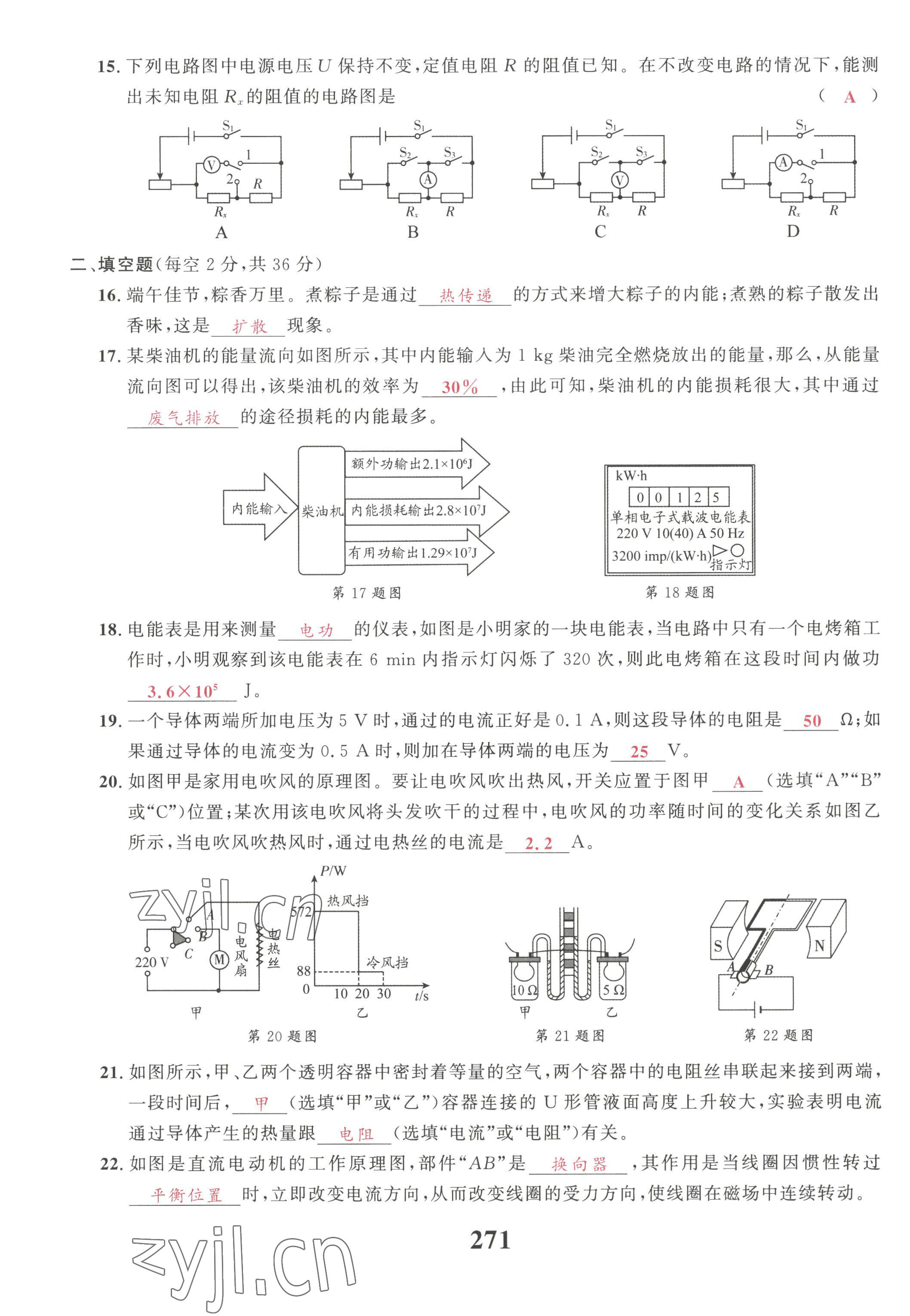 注:目前有些书本章节名称可能整理的还不是很完善,但都是按照顺序排列的,请同学们按照顺序仔细查找。练习册 2022年骄子1号九年级物理全一册教科版 答案主要是用来给同学们做完题方便对答案用的,请勿直接抄袭。