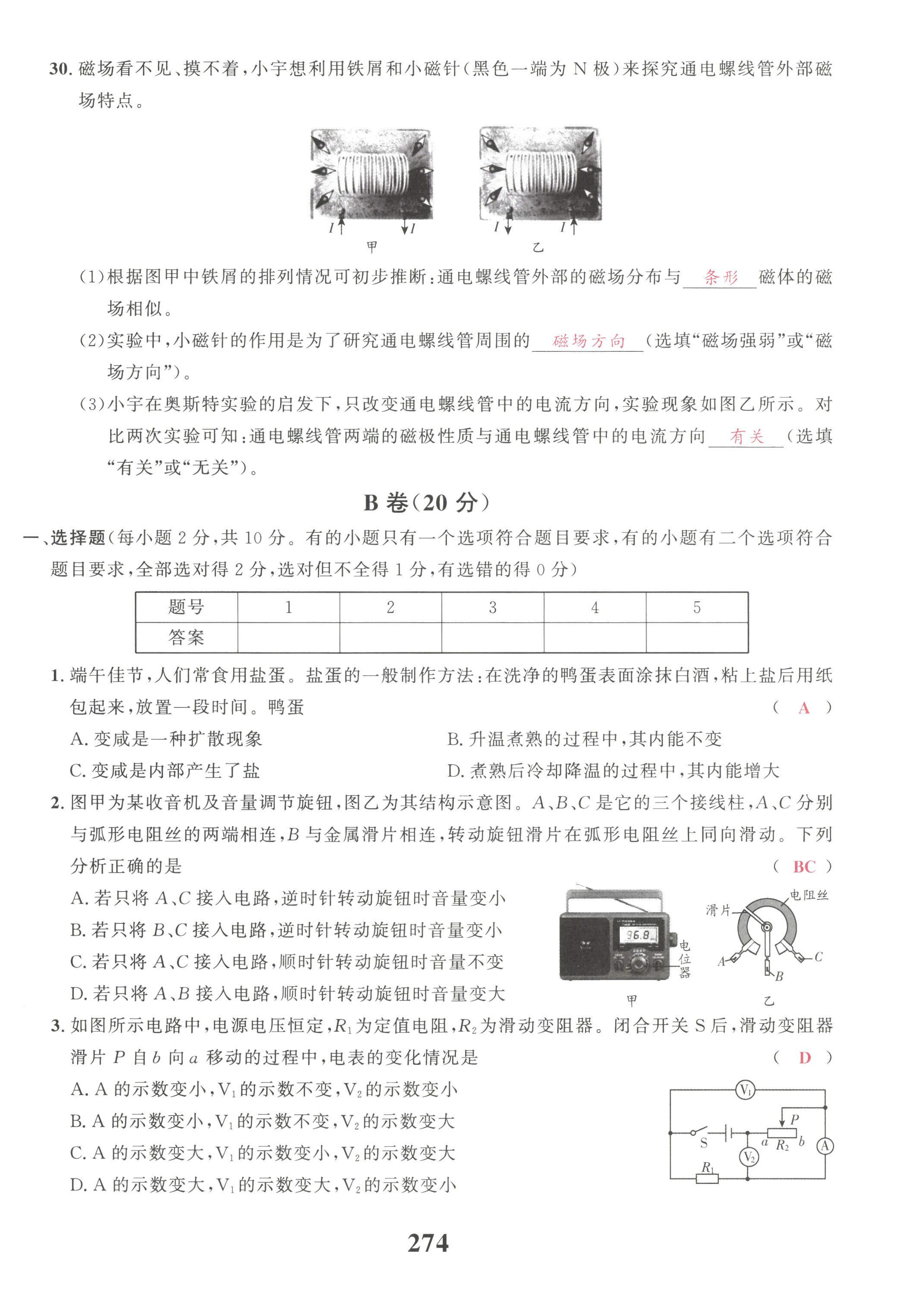 注:目前有些书本章节名称可能整理的还不是很完善,但都是按照顺序排列的,请同学们按照顺序仔细查找。练习册 2022年骄子1号九年级物理全一册教科版 答案主要是用来给同学们做完题方便对答案用的,请勿直接抄袭。