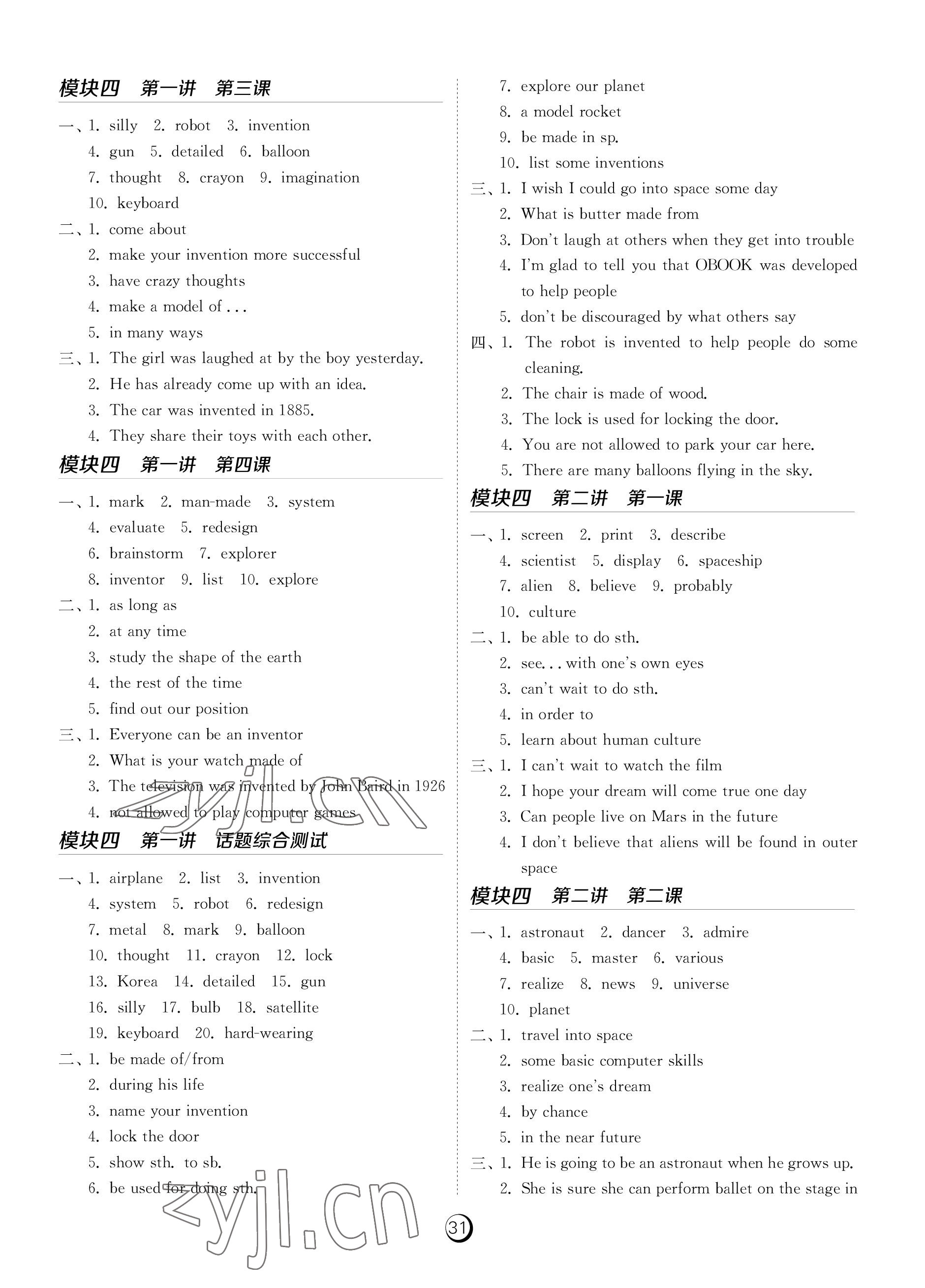 注:目前有些书本章节名称可能整理的还不是很完善,但都是按照顺序排列的,请同学们按照顺序仔细查找。练习册 2022年课时训练江苏人民出版社九年级英语全一册人教版福建专版 答案主要是用来给同学们做完题方便对答案用的,请勿直接抄袭。