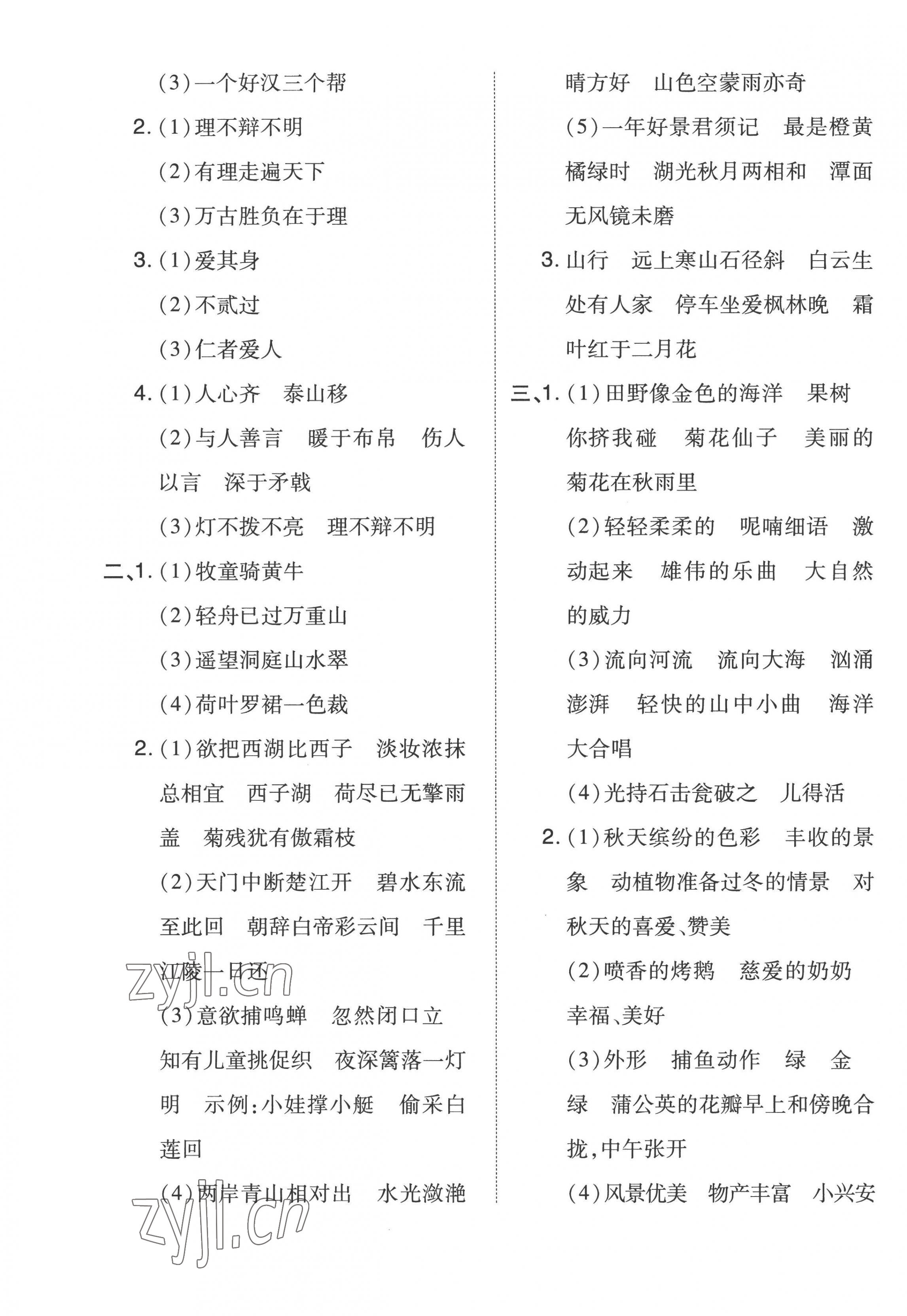 注:目前有些书本章节名称可能整理的还不是很完善,但都是按照顺序排列的,请同学们按照顺序仔细查找。练习册 2022年好卷三年级语文上册人教版 答案主要是用来给同学们做完题方便对答案用的,请勿直接抄袭。
