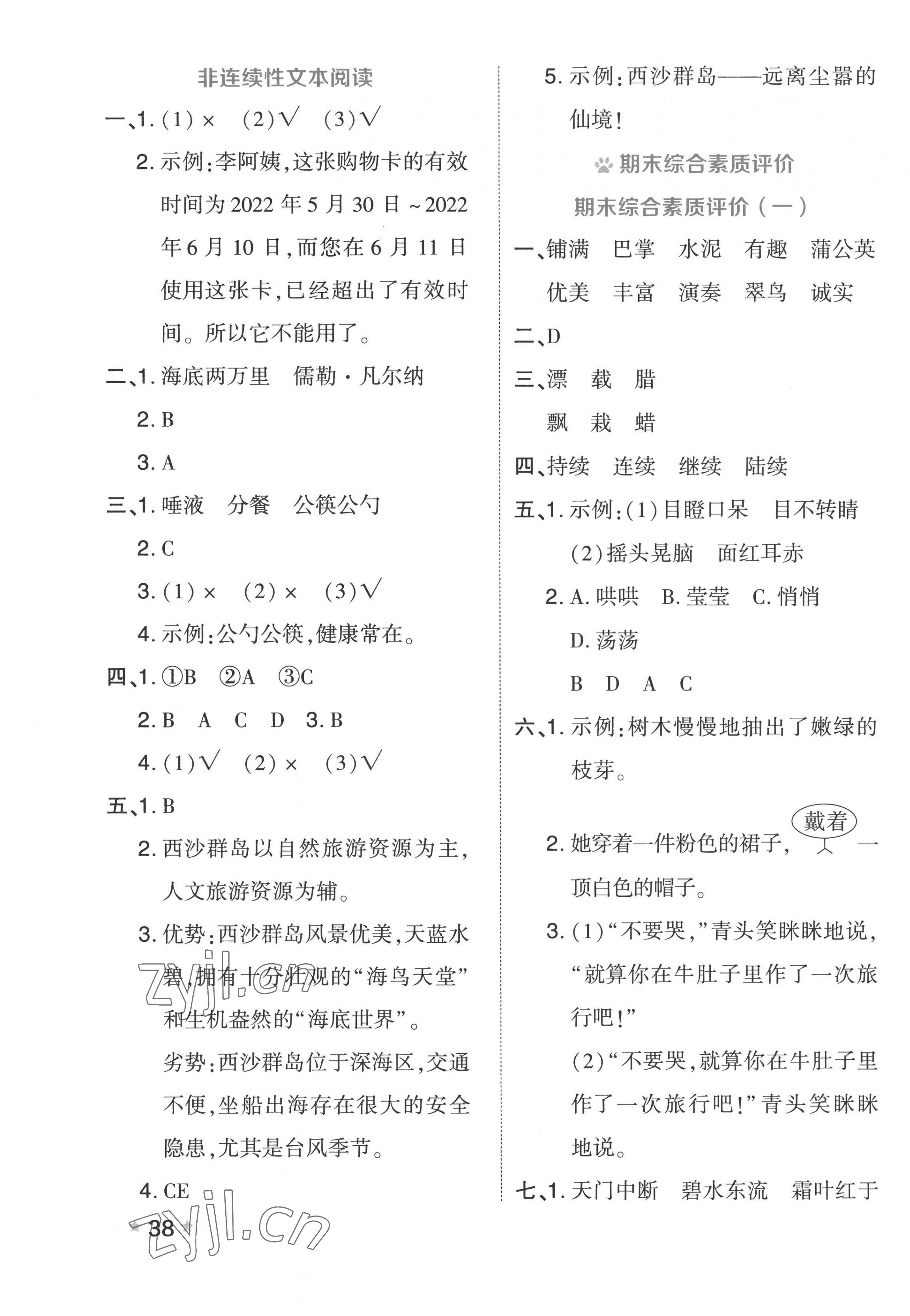 注:目前有些书本章节名称可能整理的还不是很完善,但都是按照顺序排列的,请同学们按照顺序仔细查找。练习册 2022年好卷三年级语文上册人教版 答案主要是用来给同学们做完题方便对答案用的,请勿直接抄袭。