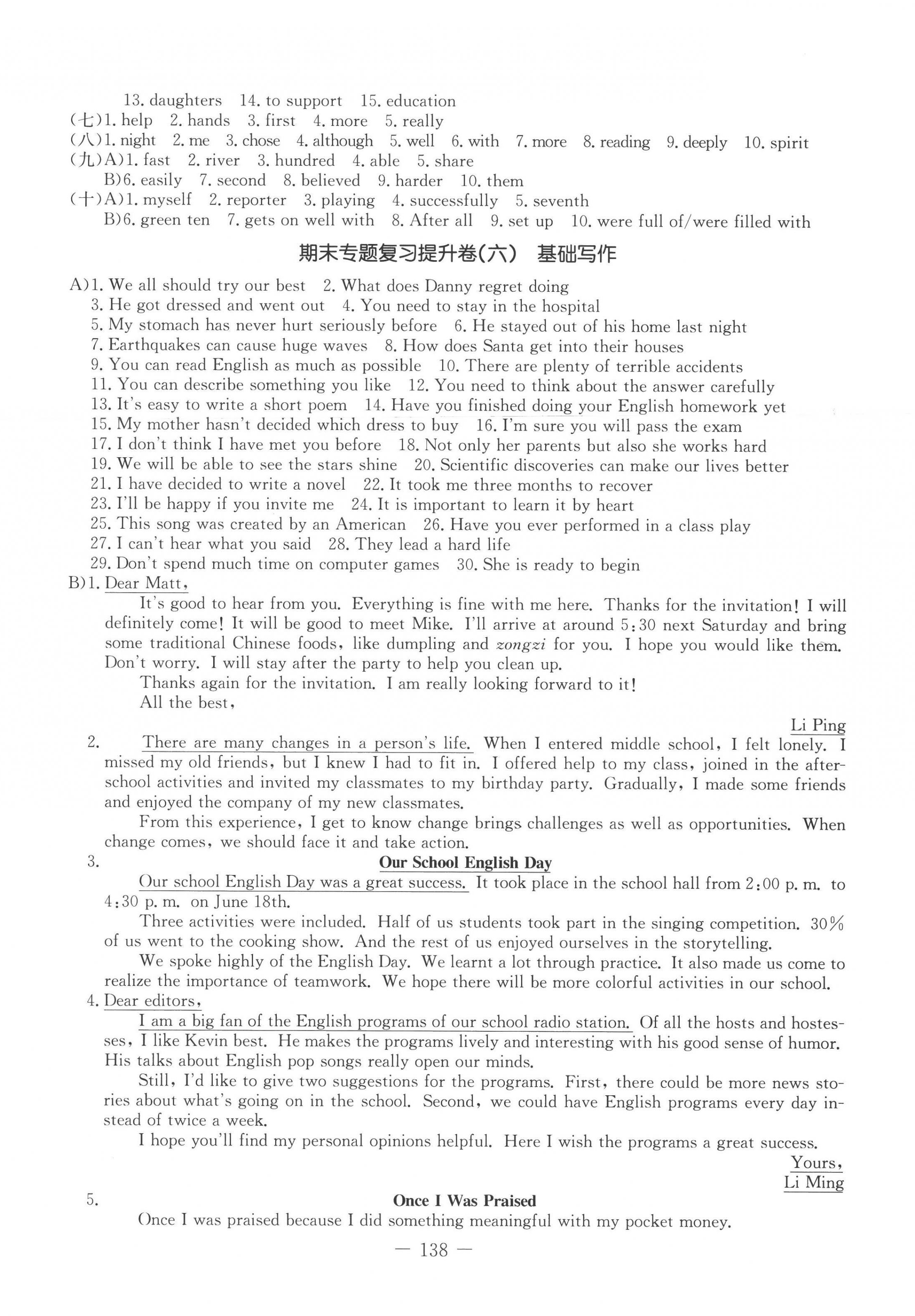 注:目前有些书本章节名称可能整理的还不是很完善,但都是按照顺序排列的,请同学们按照顺序仔细查找。练习册 2022年创新思维九年级英语上册冀教版 答案主要是用来给同学们做完题方便对答案用的,请勿直接抄袭。