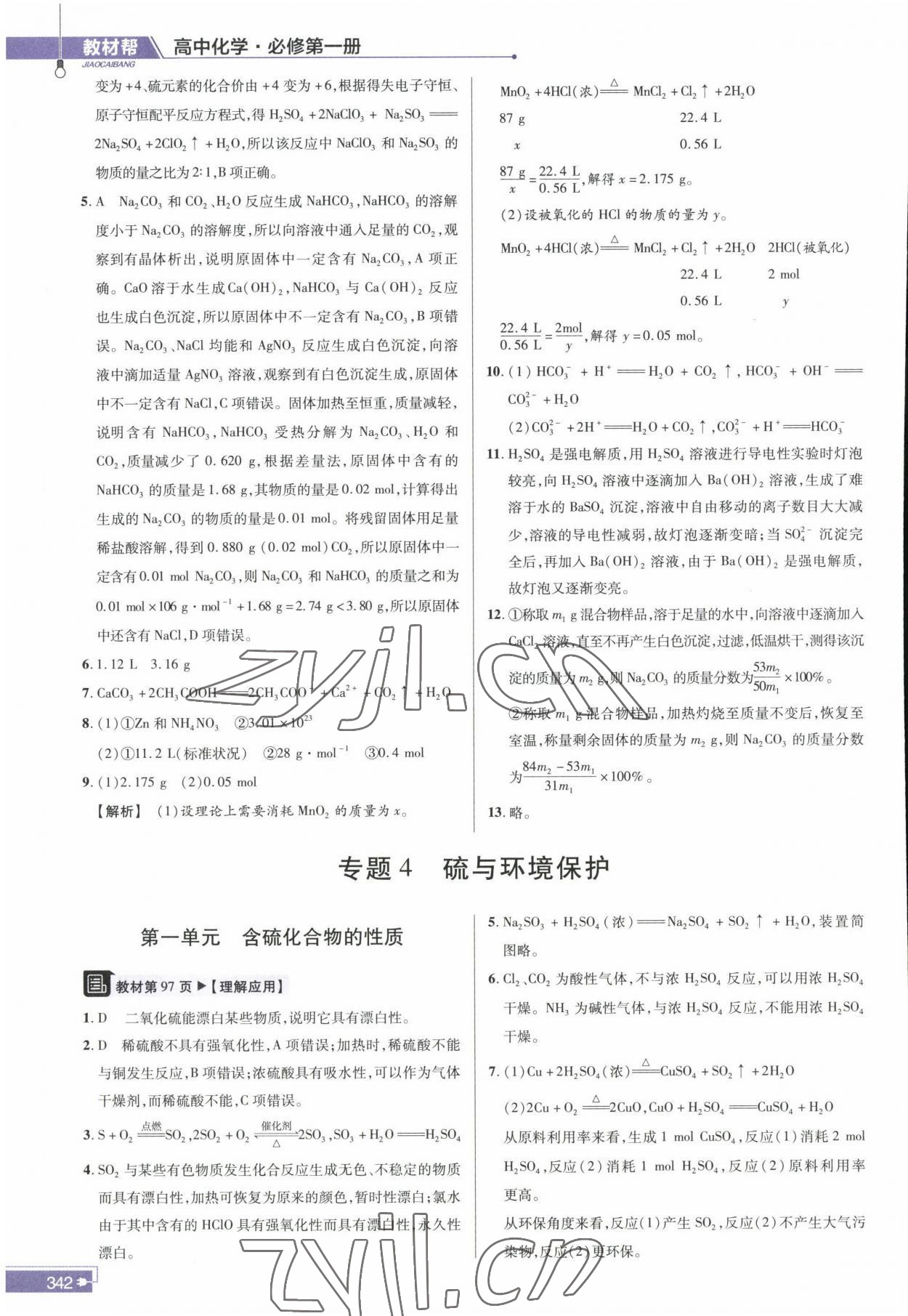注:目前有些书本章节名称可能整理的还不是很完善,但都是按照顺序排列的,请同学们按照顺序仔细查找。练习册 2022年教材课本高中化学必修必修第一册苏教版 答案主要是用来给同学们做完题方便对答案用的,请勿直接抄袭。