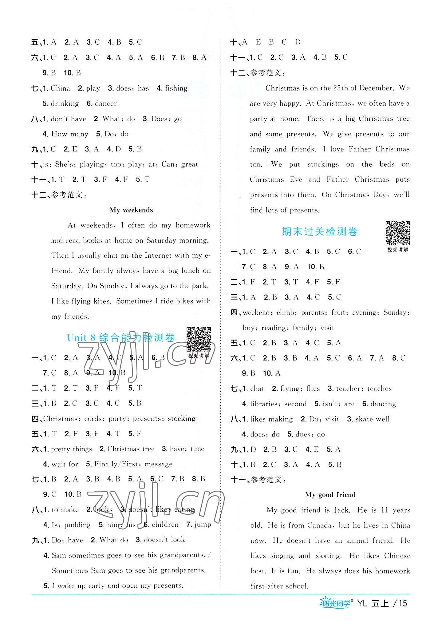 注:目前有些书本章节名称可能整理的还不是很完善,但都是按照顺序排列的,请同学们按照顺序仔细查找。练习册 2022年阳光同学课时优化作业五年级英语上册译林版 答案主要是用来给同学们做完题方便对答案用的,请勿直接抄袭。