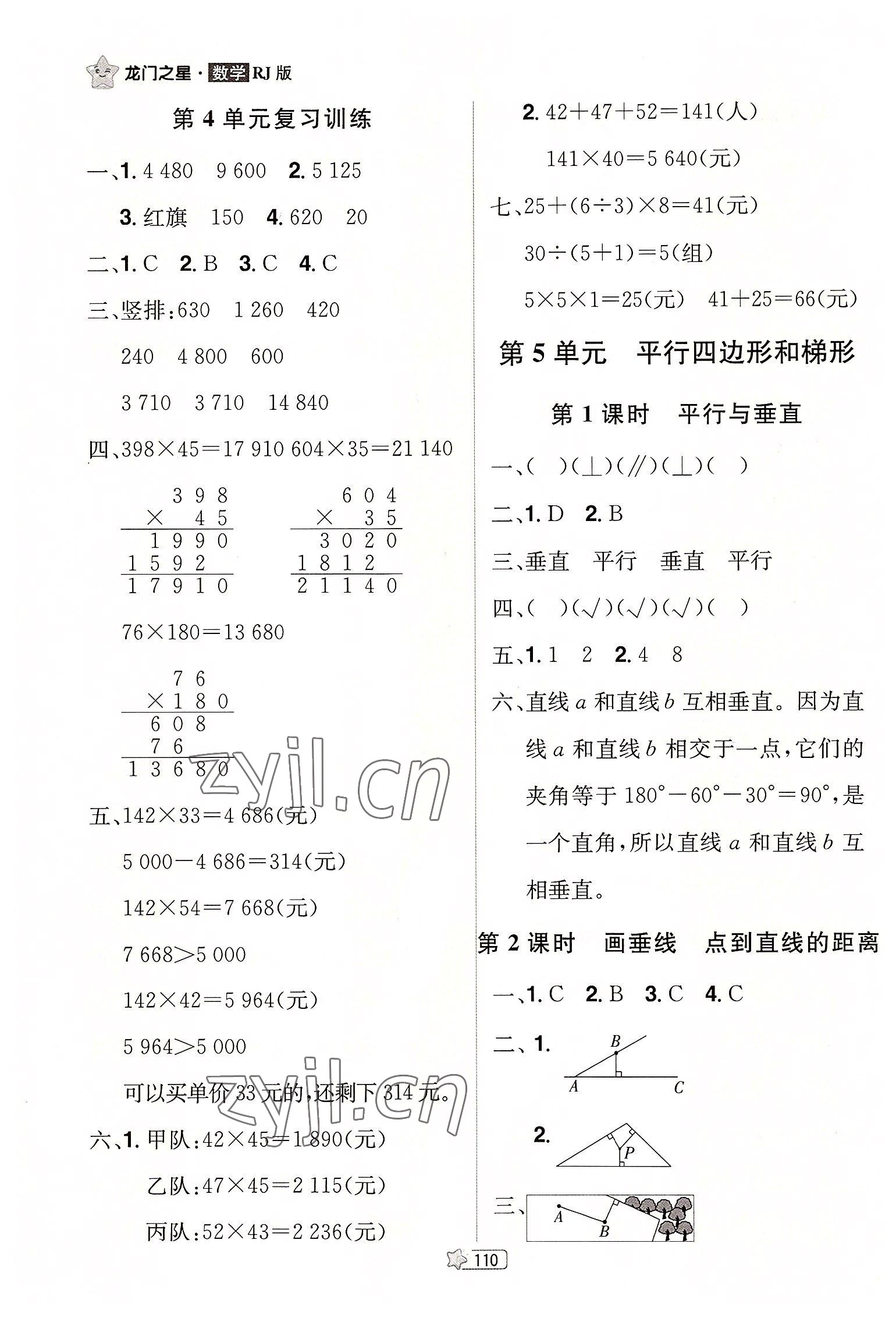 注:目前有些书本章节名称可能整理的还不是很完善,但都是按照顺序排列的,请同学们按照顺序仔细查找。练习册 2022年龙门之星四年级数学上册人教版 答案主要是用来给同学们做完题方便对答案用的,请勿直接抄袭。