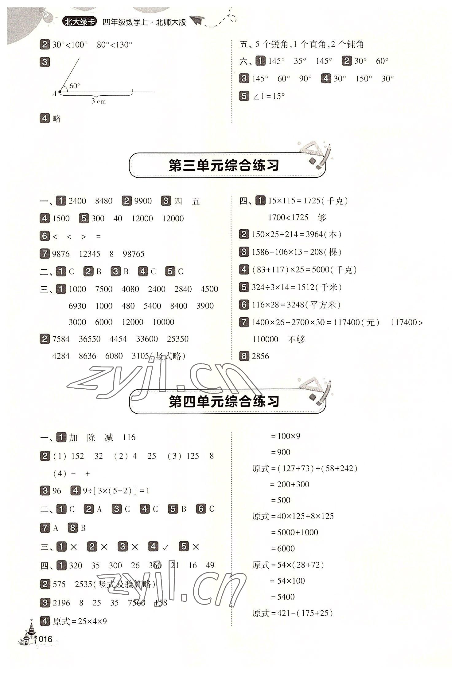 注:目前有些书本章节名称可能整理的还不是很完善,但都是按照顺序排列的,请同学们按照顺序仔细查找。练习册 2022年北大绿卡四年级数学上册北师大版 答案主要是用来给同学们做完题方便对答案用的,请勿直接抄袭。