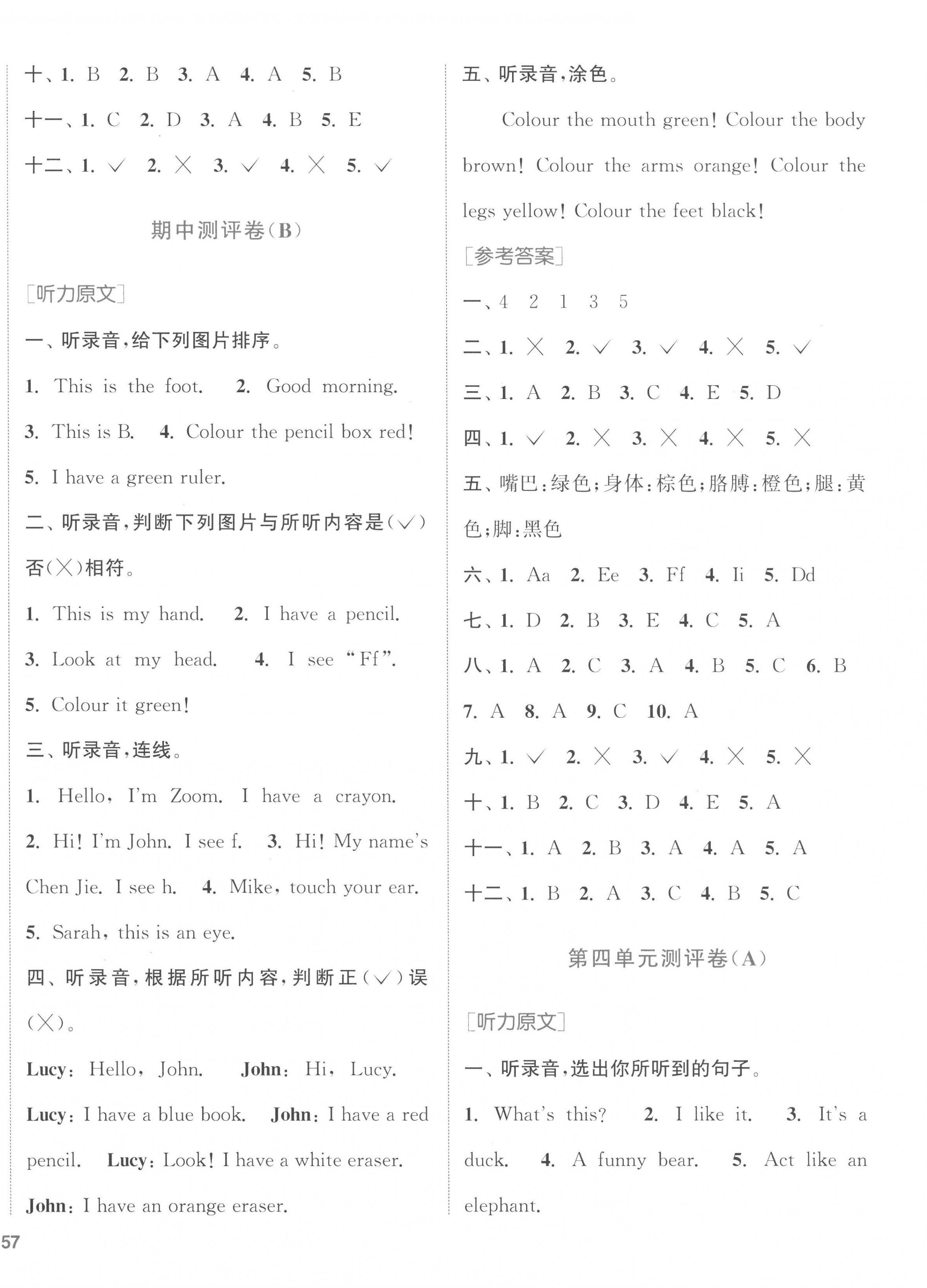 注:目前有些书本章节名称可能整理的还不是很完善,但都是按照顺序排列的,请同学们按照顺序仔细查找。练习册 2022年通城学典全程测评卷三年级英语上册人教版 答案主要是用来给同学们做完题方便对答案用的,请勿直接抄袭。