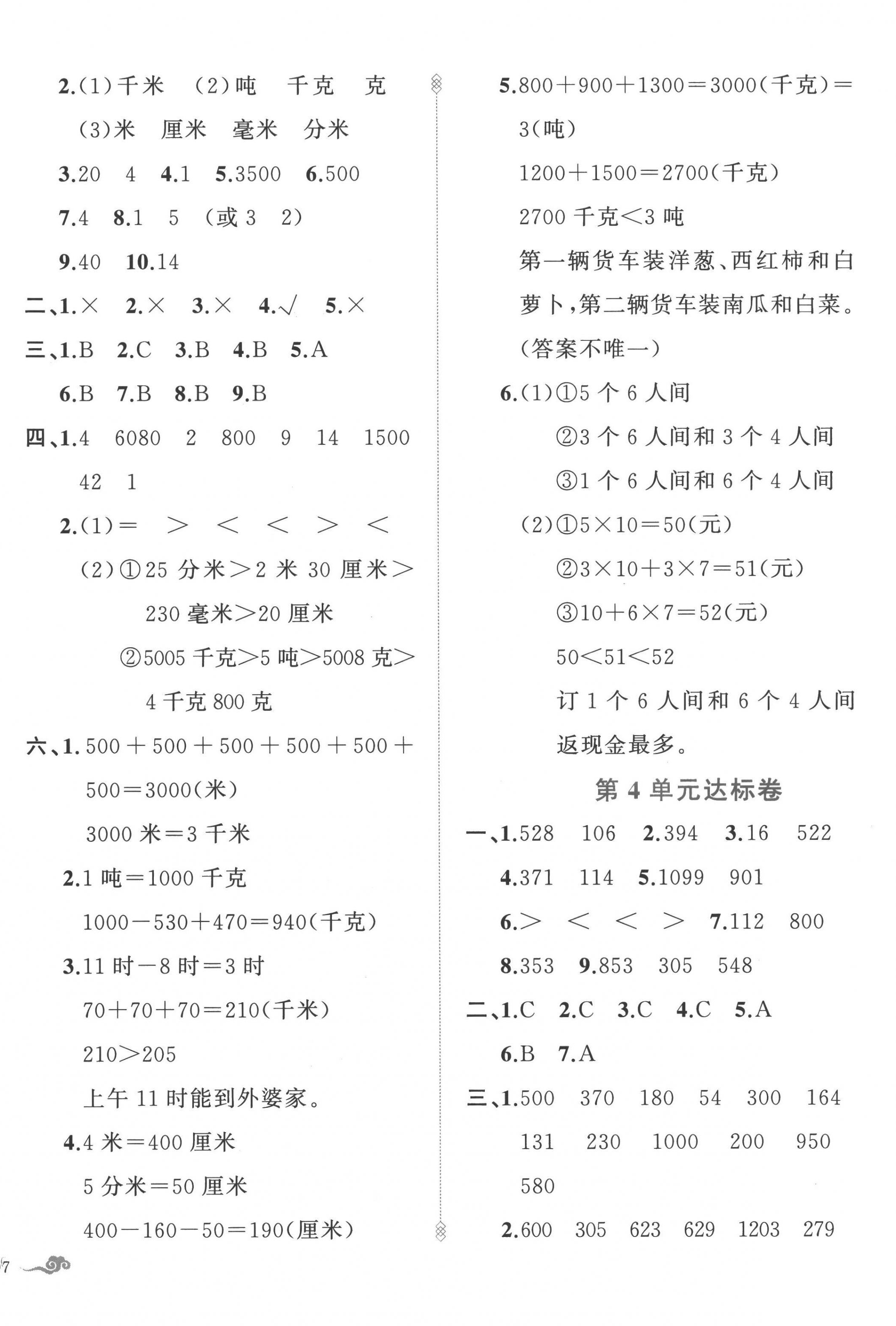 2022年黄冈金牌之路练闯考三年级数学上册人教版