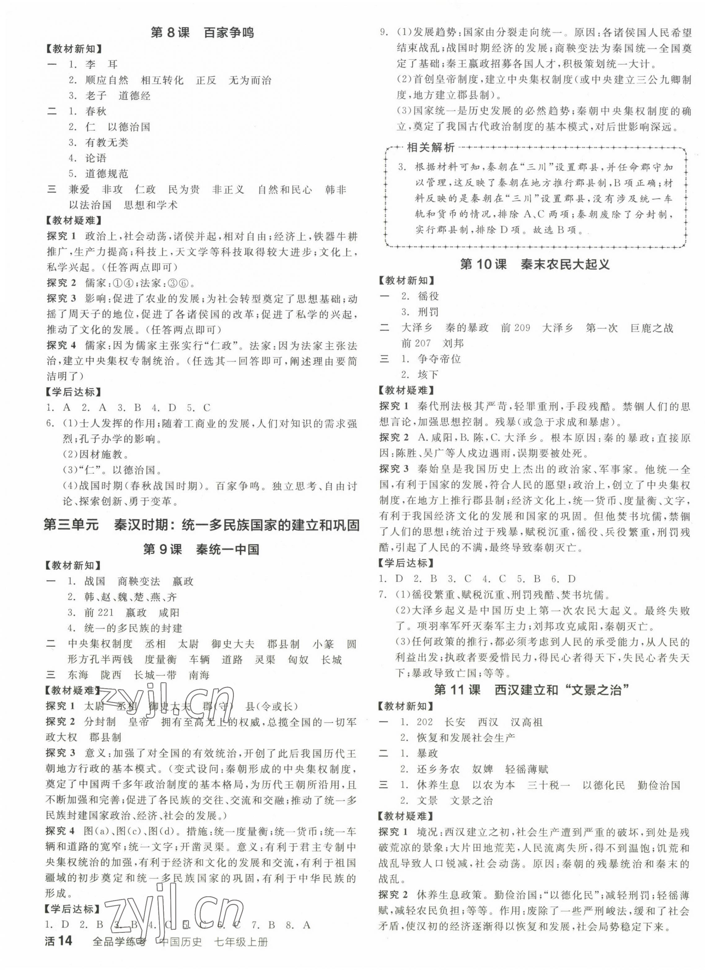注:目前有些书本章节名称可能整理的还不是很完善,但都是按照顺序排列的,请同学们按照顺序仔细查找。练习册 2022年全品学练考七年级历史上册人教版江西专版 答案主要是用来给同学们做完题方便对答案用的,请勿直接抄袭。