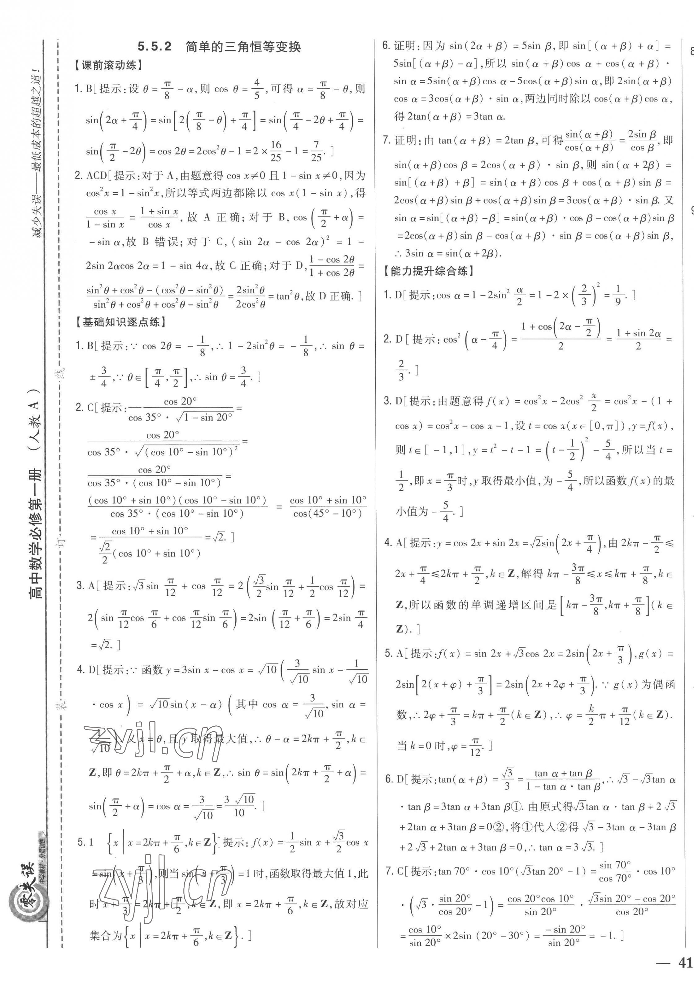 注:目前有些书本章节名称可能整理的还不是很完善,但都是按照顺序排列的,请同学们按照顺序仔细查找。练习册 2022年零失误分层训练高中数学必修第一册人教版新高考 答案主要是用来给同学们做完题方便对答案用的,请勿直接抄袭。