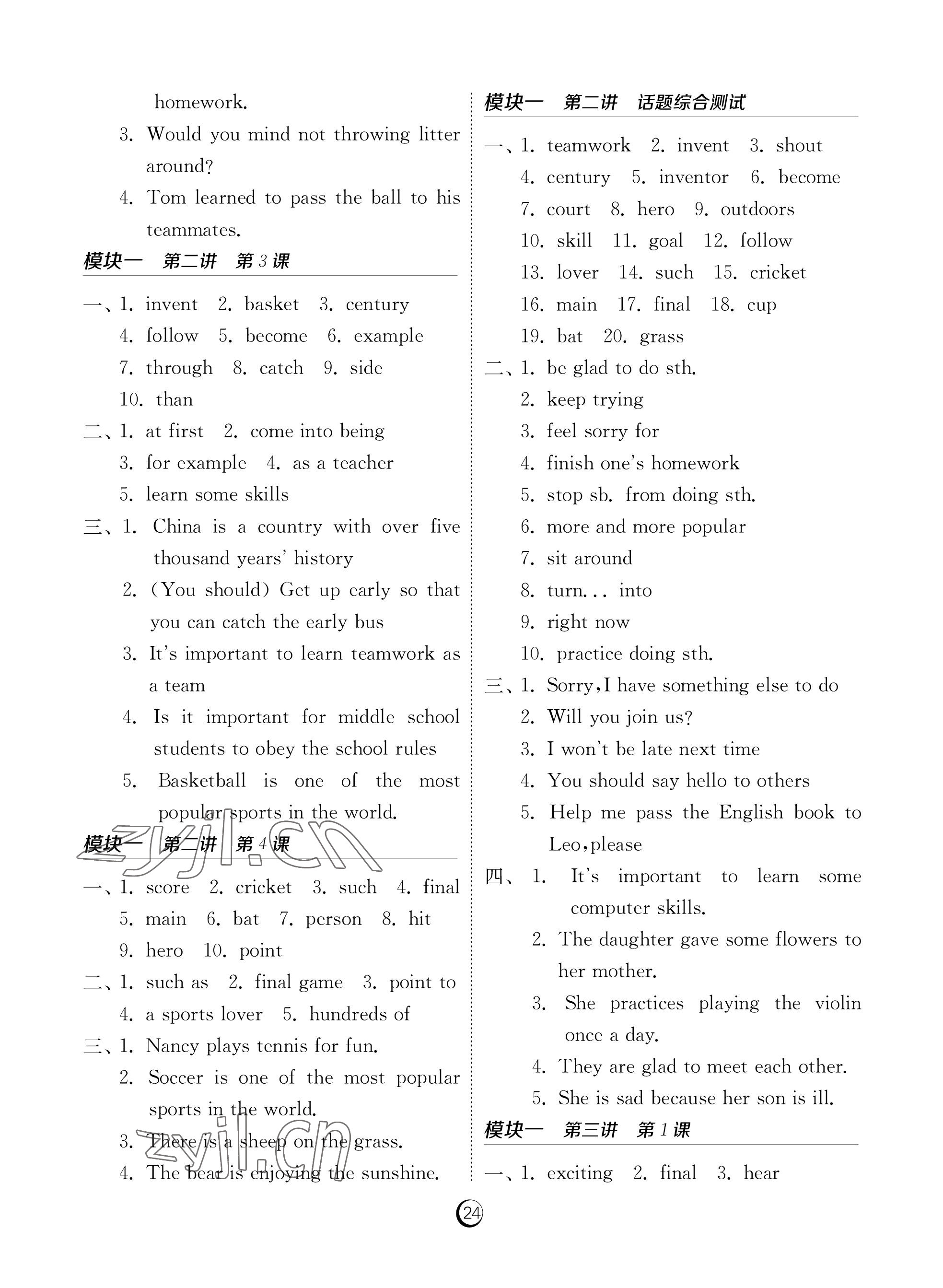 注:目前有些书本章节名称可能整理的还不是很完善,但都是按照顺序排列的,请同学们按照顺序仔细查找。练习册 2022年课时训练江苏人民出版社八年级英语上册人教版福建专版 答案主要是用来给同学们做完题方便对答案用的,请勿直接抄袭。