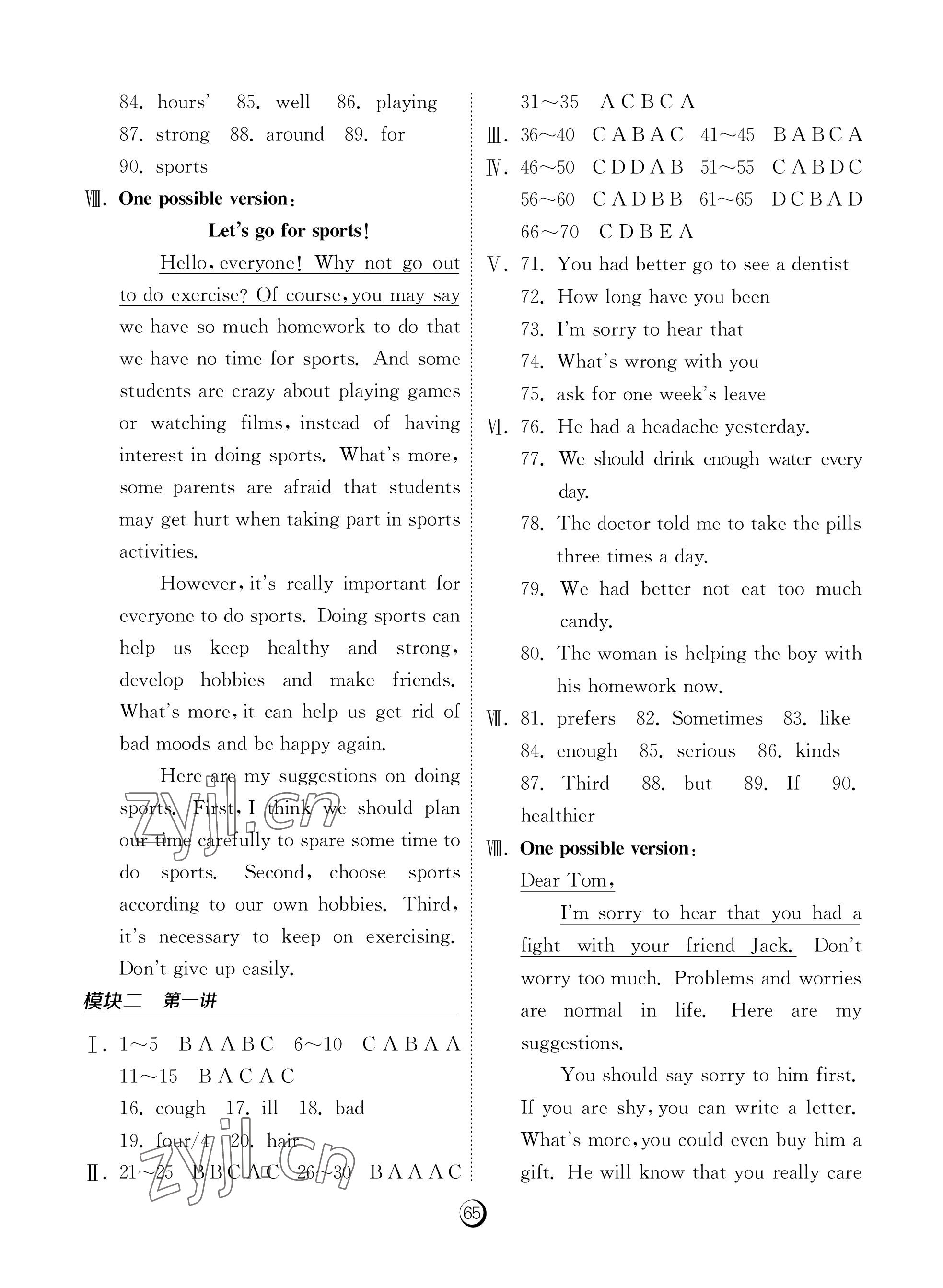 参考答案第65页