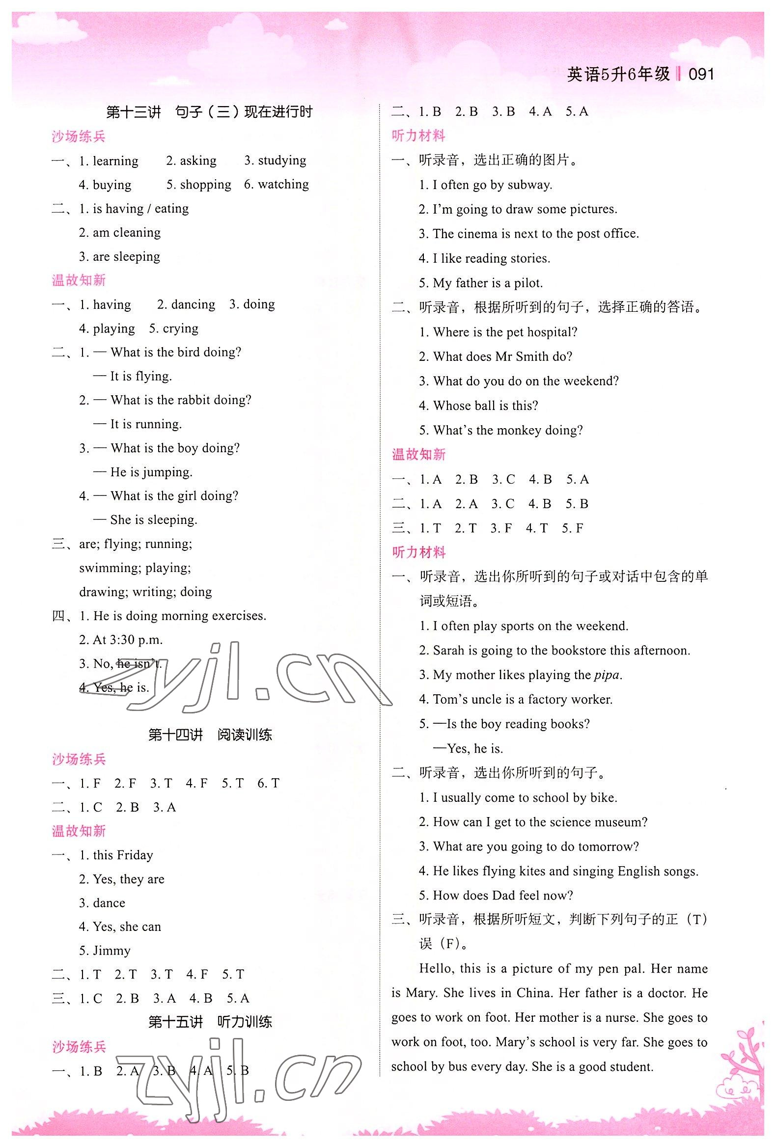 注:目前有些书本章节名称可能整理的还不是很完善,但都是按照顺序排列的,请同学们按照顺序仔细查找。练习册 2022年新概念小学年级衔接教材江苏凤凰美术出版社五升六英语 答案主要是用来给同学们做完题方便对答案用的,请勿直接抄袭。