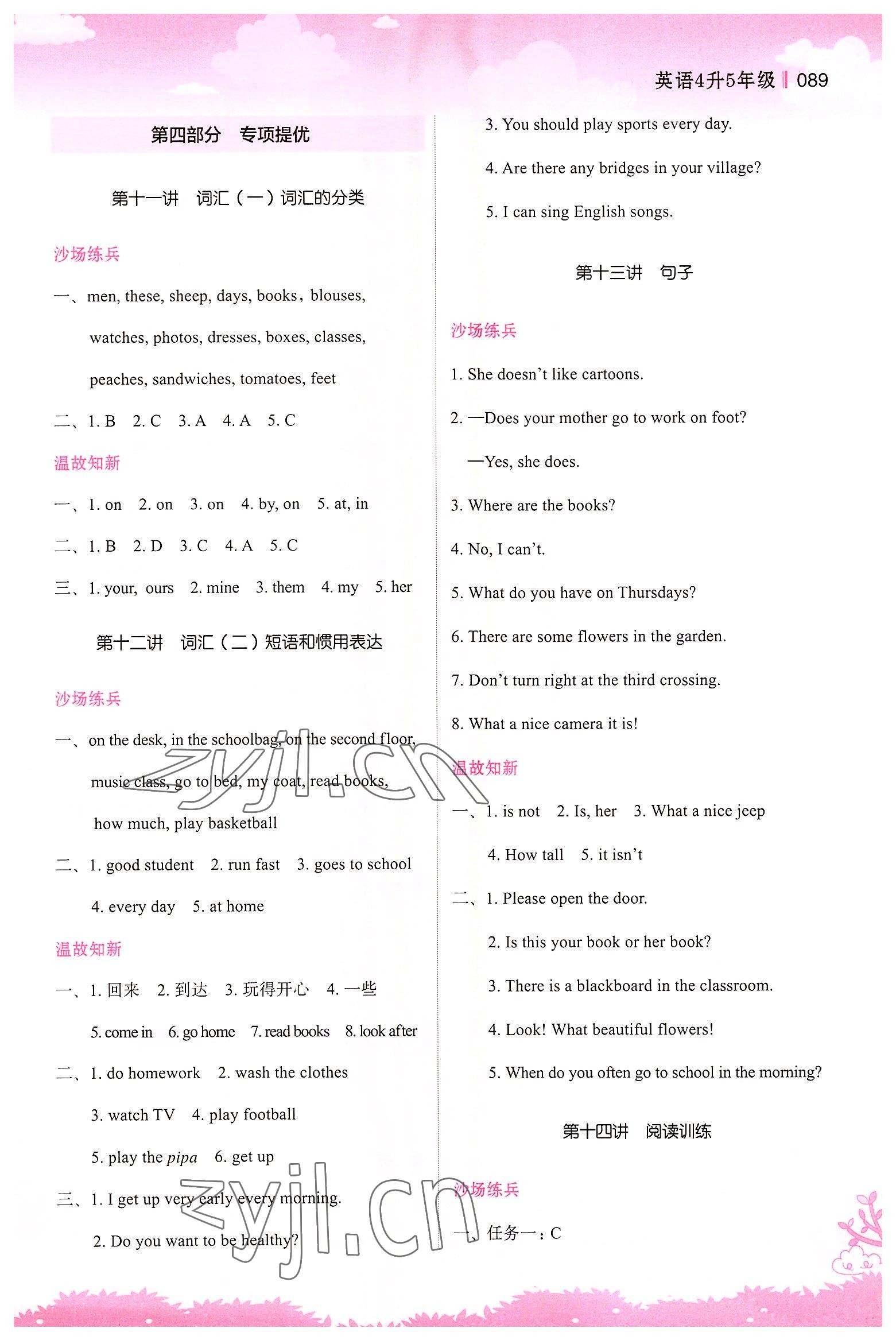 2022年新概念小学年级衔接教材江苏凤凰美术出版社四升五英语