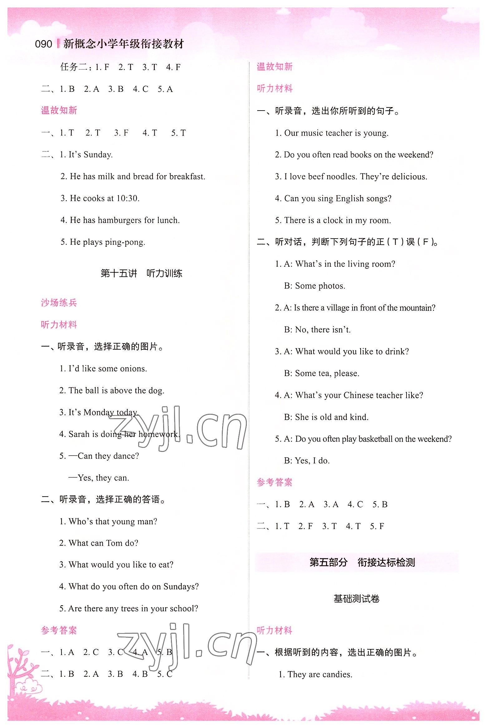 注:目前有些书本章节名称可能整理的还不是很完善,但都是按照顺序排列的,请同学们按照顺序仔细查找。练习册 2022年新概念小学年级衔接教材江苏凤凰美术出版社四升五英语 答案主要是用来给同学们做完题方便对答案用的,请勿直接抄袭。