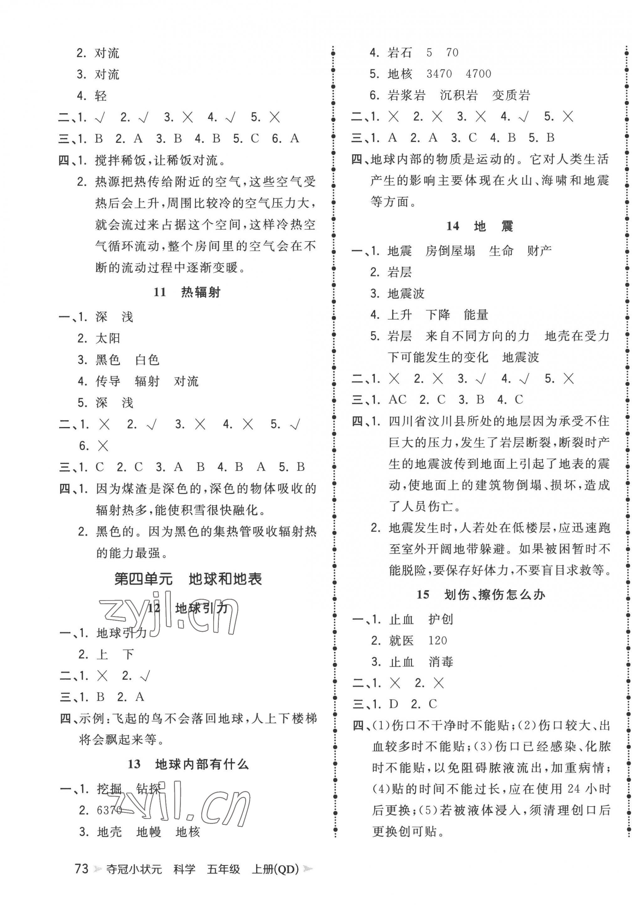 2022年夺冠小状元课时作业本五年级科学上册青岛版