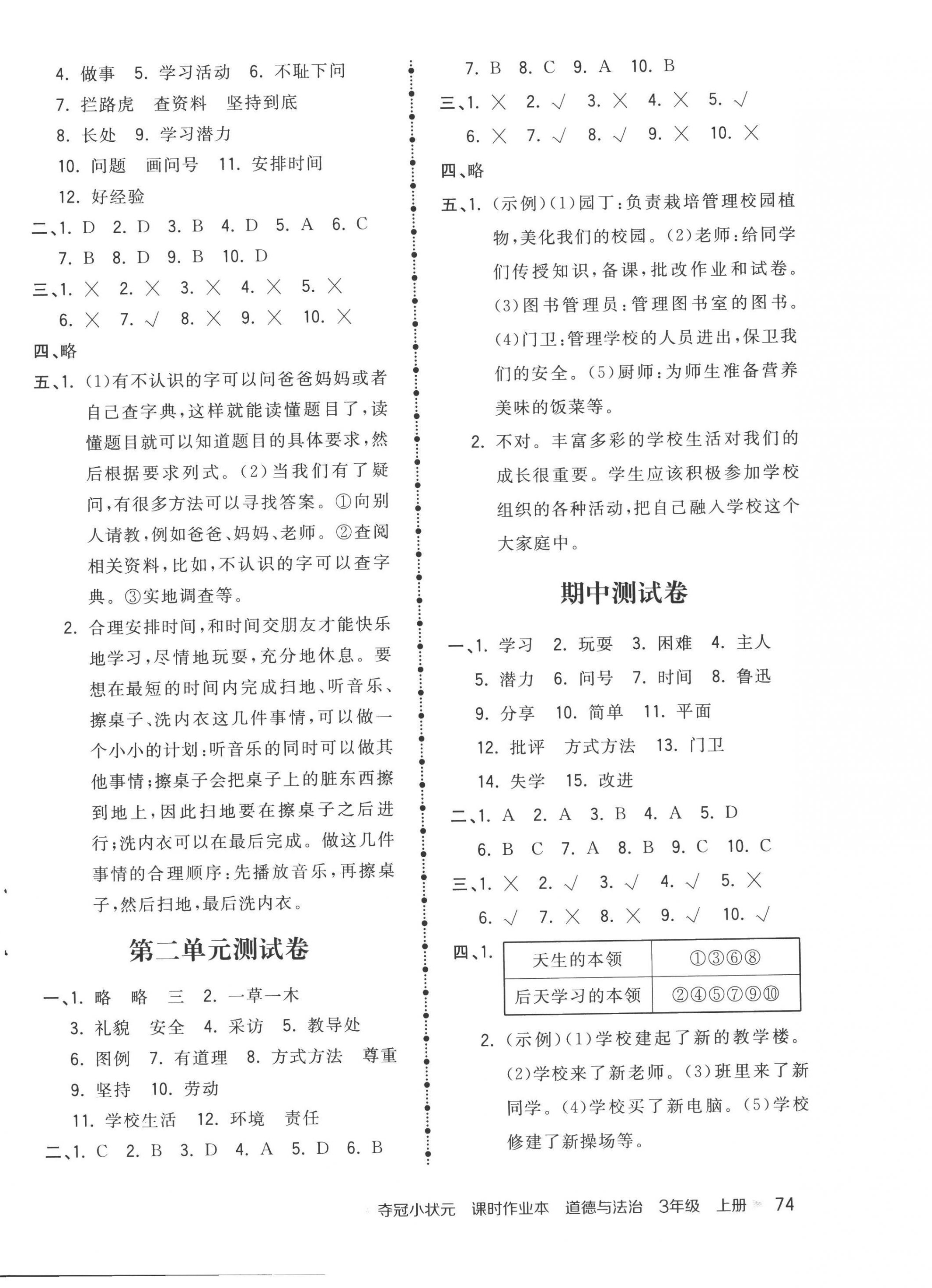 注:目前有些书本章节名称可能整理的还不是很完善,但都是按照顺序排列的,请同学们按照顺序仔细查找。练习册 2022年夺冠小状元课时作业本三年级道德与法治上册人教版 答案主要是用来给同学们做完题方便对答案用的,请勿直接抄袭。