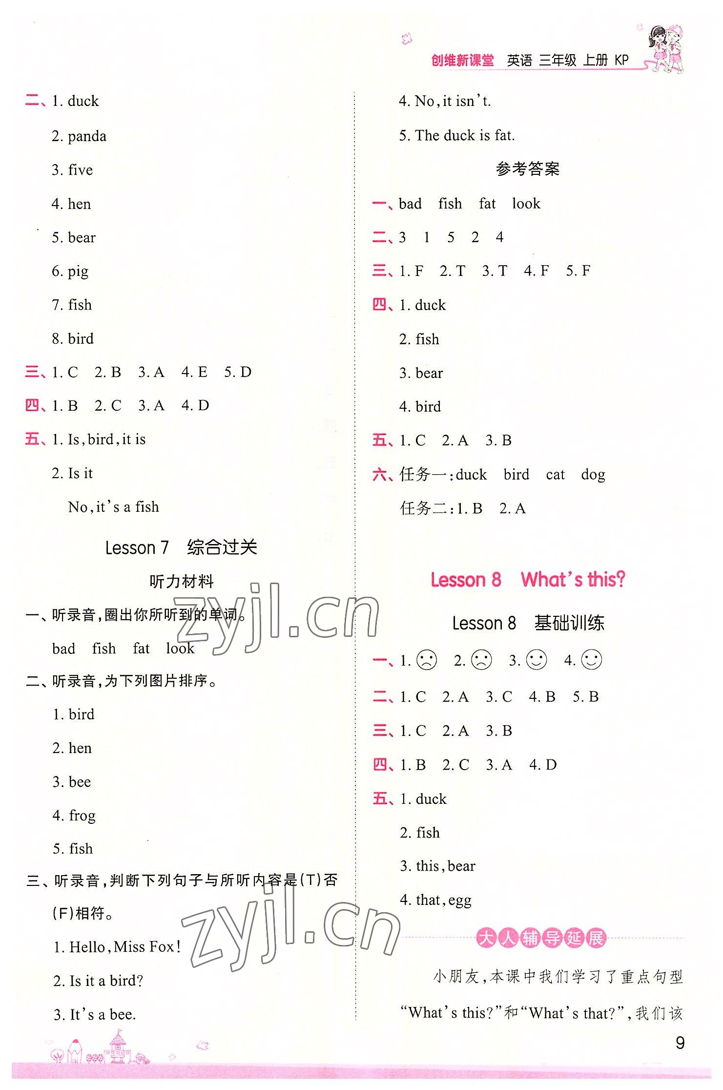注:目前有些书本章节名称可能整理的还不是很完善,但都是按照顺序排列的,请同学们按照顺序仔细查找。练习册 2022年创维新课堂三年级英语上册科普版 答案主要是用来给同学们做完题方便对答案用的,请勿直接抄袭。