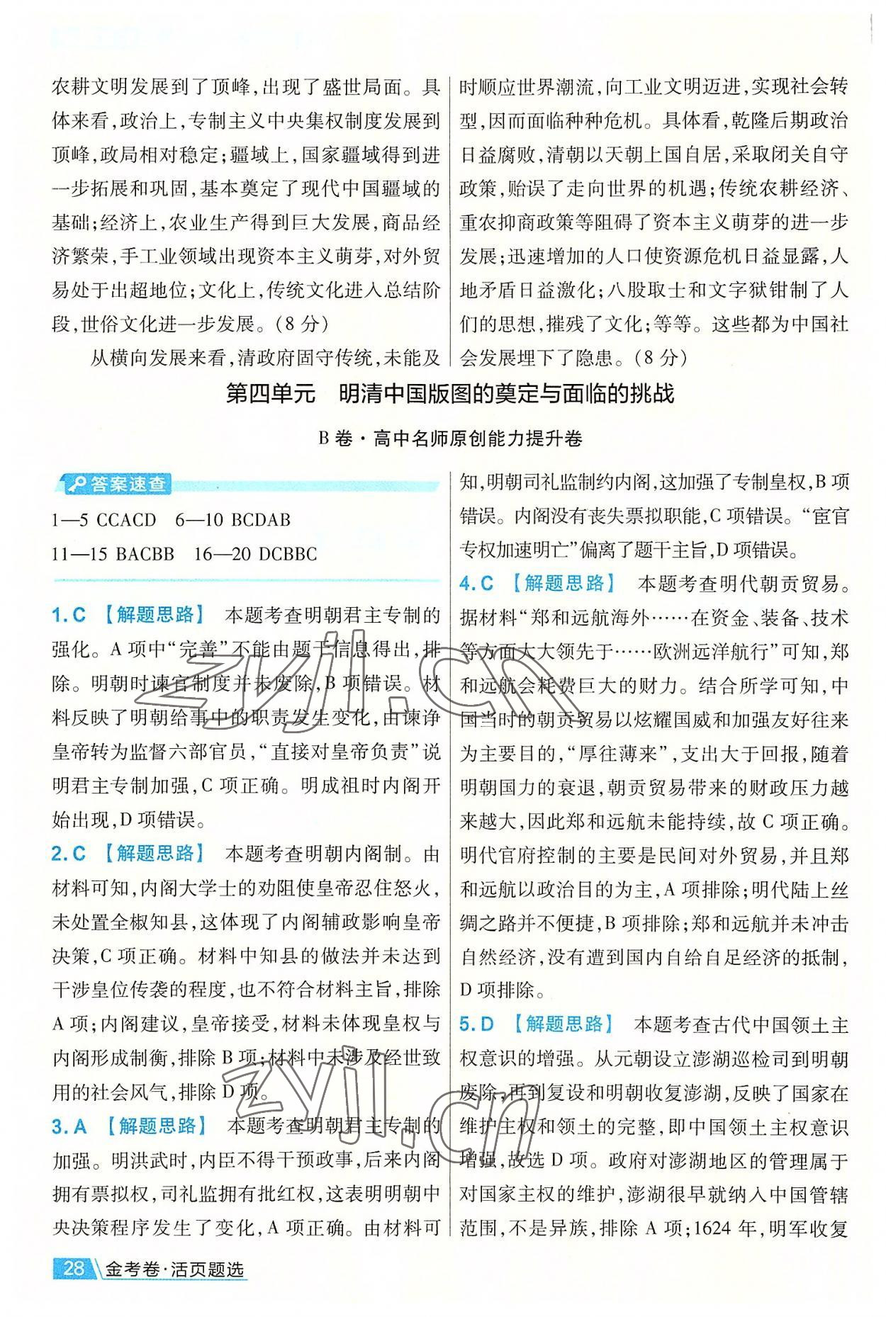注:目前有些书本章节名称可能整理的还不是很完善,但都是按照顺序排列的,请同学们按照顺序仔细查找。练习册 2022年金考卷活页题选高中历史必修上册人教版 答案主要是用来给同学们做完题方便对答案用的,请勿直接抄袭。