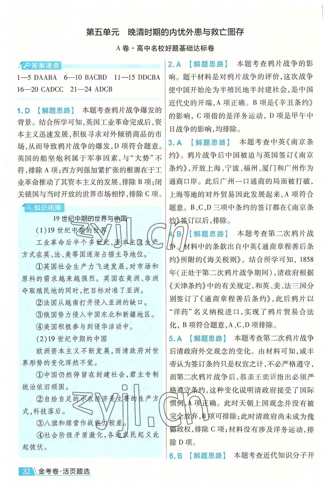 注:目前有些书本章节名称可能整理的还不是很完善,但都是按照顺序排列的,请同学们按照顺序仔细查找。练习册 2022年金考卷活页题选高中历史必修上册人教版 答案主要是用来给同学们做完题方便对答案用的,请勿直接抄袭。