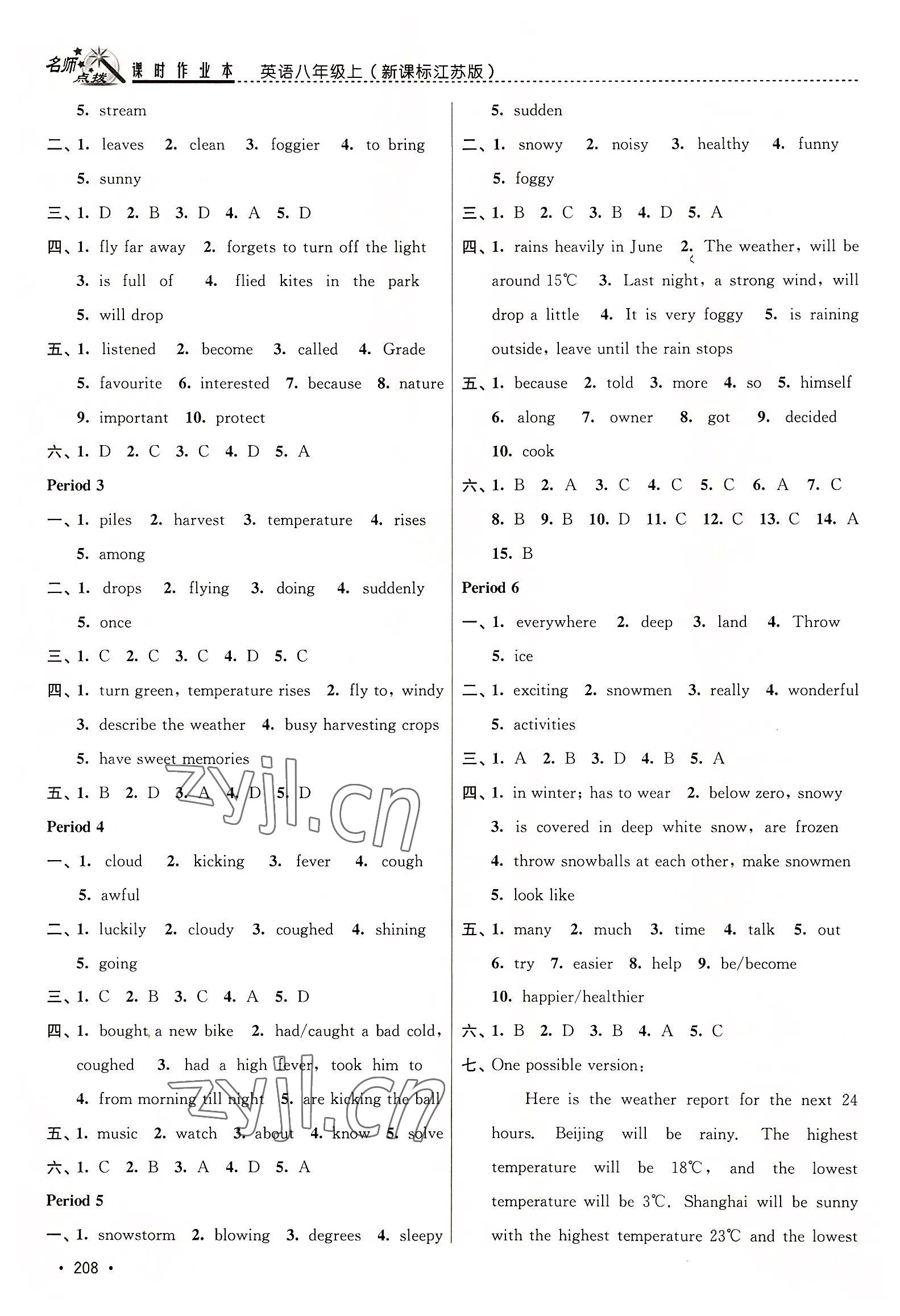 注:目前有些书本章节名称可能整理的还不是很完善,但都是按照顺序排列的,请同学们按照顺序仔细查找。练习册 2022年名师点拨课时作业本八年级英语上册译林版 答案主要是用来给同学们做完题方便对答案用的,请勿直接抄袭。