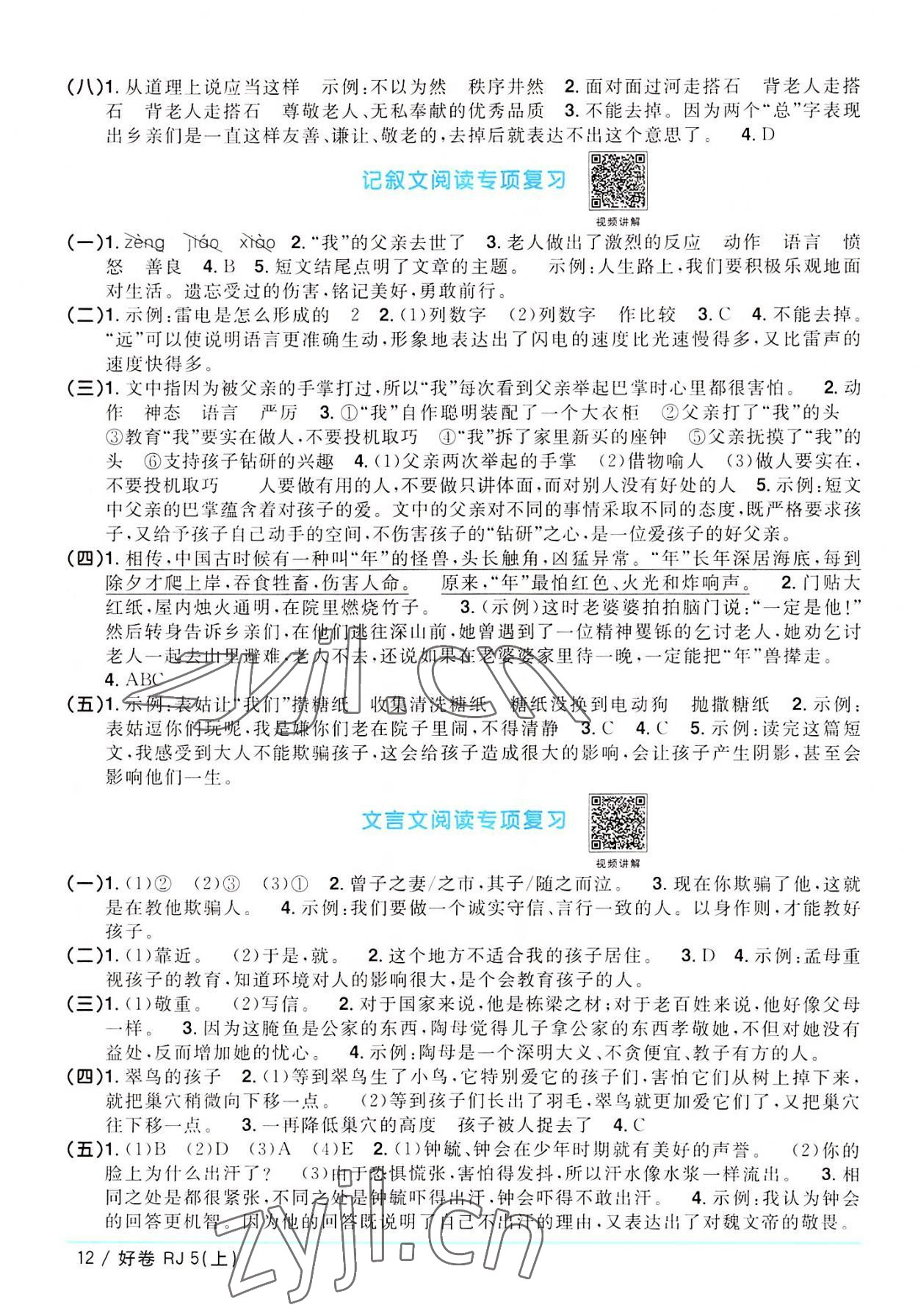 注:目前有些书本章节名称可能整理的还不是很完善,但都是按照顺序排列的,请同学们按照顺序仔细查找。练习册 2022年阳光同学一线名师全优好卷五年级语文上册人教版广东专版 答案主要是用来给同学们做完题方便对答案用的,请勿直接抄袭。