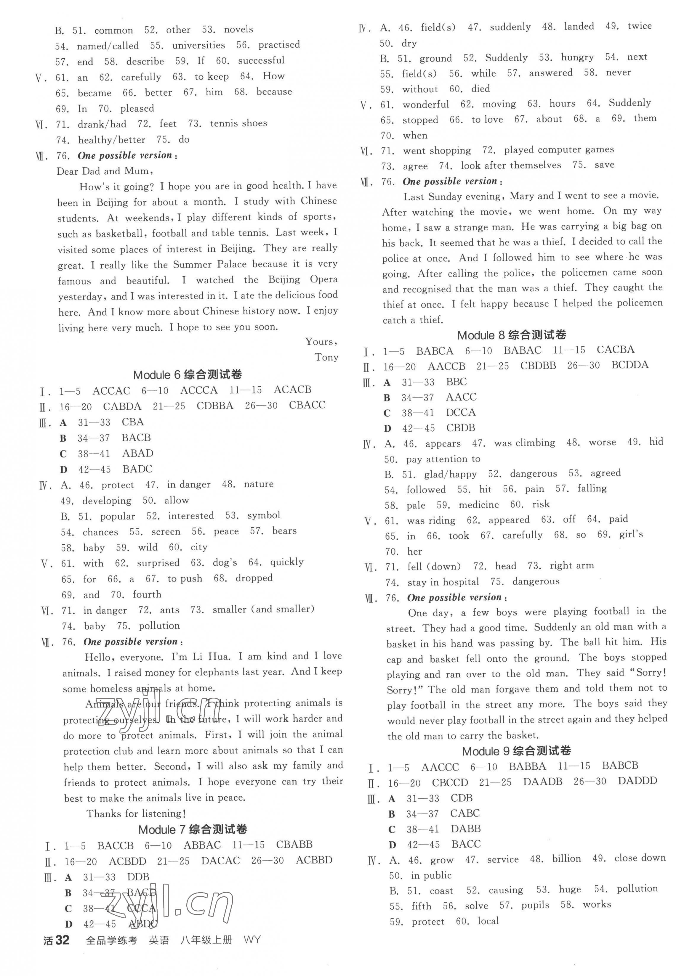 注:目前有些书本章节名称可能整理的还不是很完善,但都是按照顺序排列的,请同学们按照顺序仔细查找。练习册 2022年全品学练考八年级英语上册外研版浙江专版 答案主要是用来给同学们做完题方便对答案用的,请勿直接抄袭。