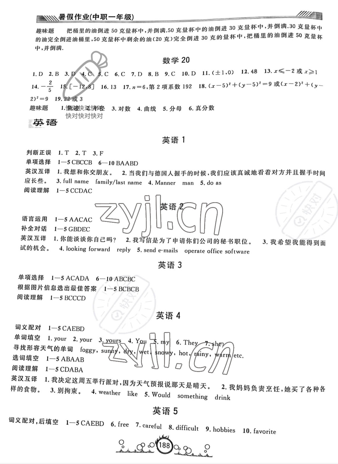 注:目前有些书本章节名称可能整理的还不是很完善,但都是按照顺序排列的,请同学们按照顺序仔细查找。练习册 2022年暑假作业电子科技大学出版社中职高一 答案主要是用来给同学们做完题方便对答案用的,请勿直接抄袭。