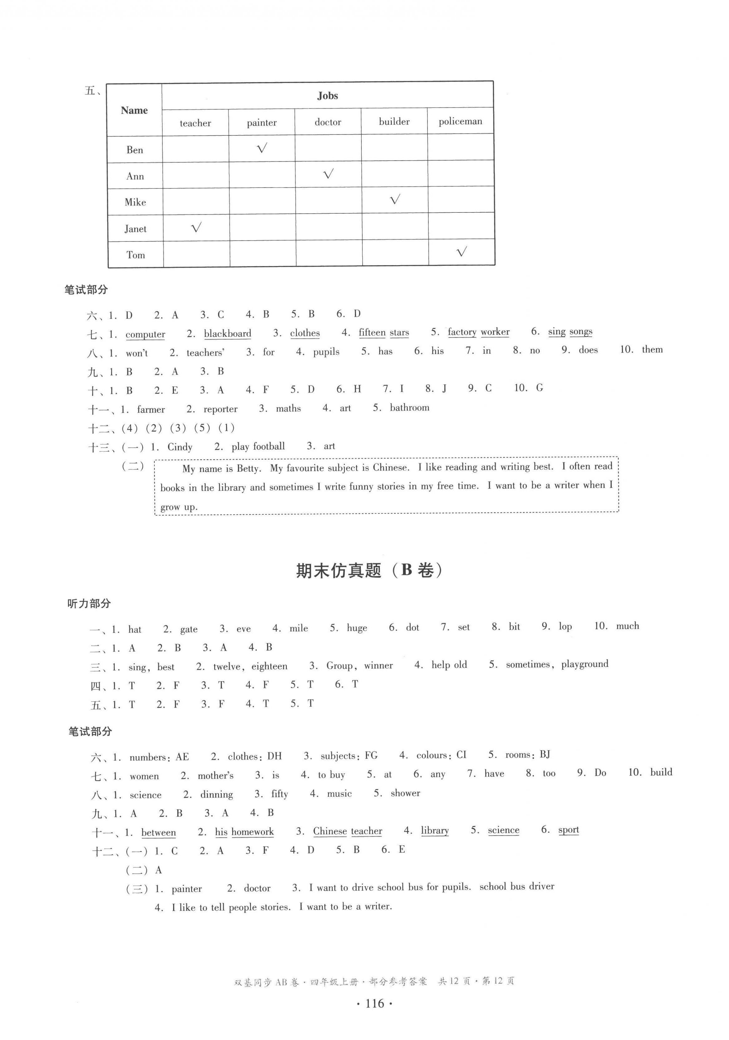 注:目前有些书本章节名称可能整理的还不是很完善,但都是按照顺序排列的,请同学们按照顺序仔细查找。练习册 2022年双基同步AB卷四年级英语上册教科版广州专版 答案主要是用来给同学们做完题方便对答案用的,请勿直接抄袭。