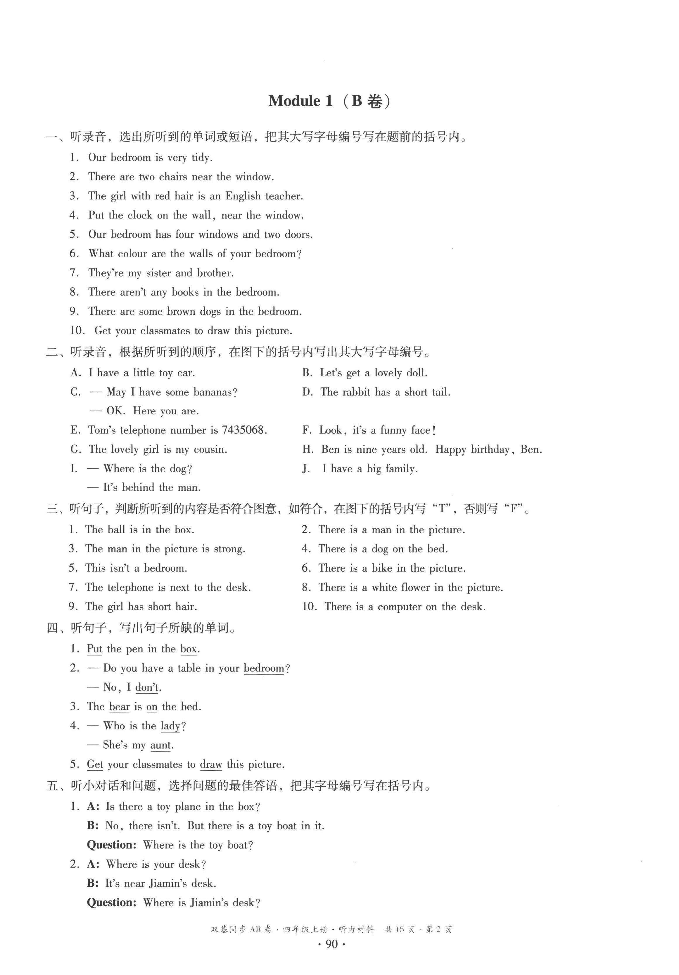 注:目前有些书本章节名称可能整理的还不是很完善,但都是按照顺序排列的,请同学们按照顺序仔细查找。练习册 2022年双基同步AB卷四年级英语上册教科版广州专版 答案主要是用来给同学们做完题方便对答案用的,请勿直接抄袭。