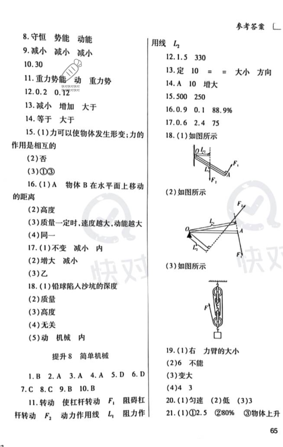 注:目前有些书本章节名称可能整理的还不是很完善,但都是按照顺序排列的,请同学们按照顺序仔细查找。练习册 2022年暑假作业与生活八年级物理人教版陕西师范大学出版总社有限公司 答案主要是用来给同学们做完题方便对答案用的,请勿直接抄袭。
