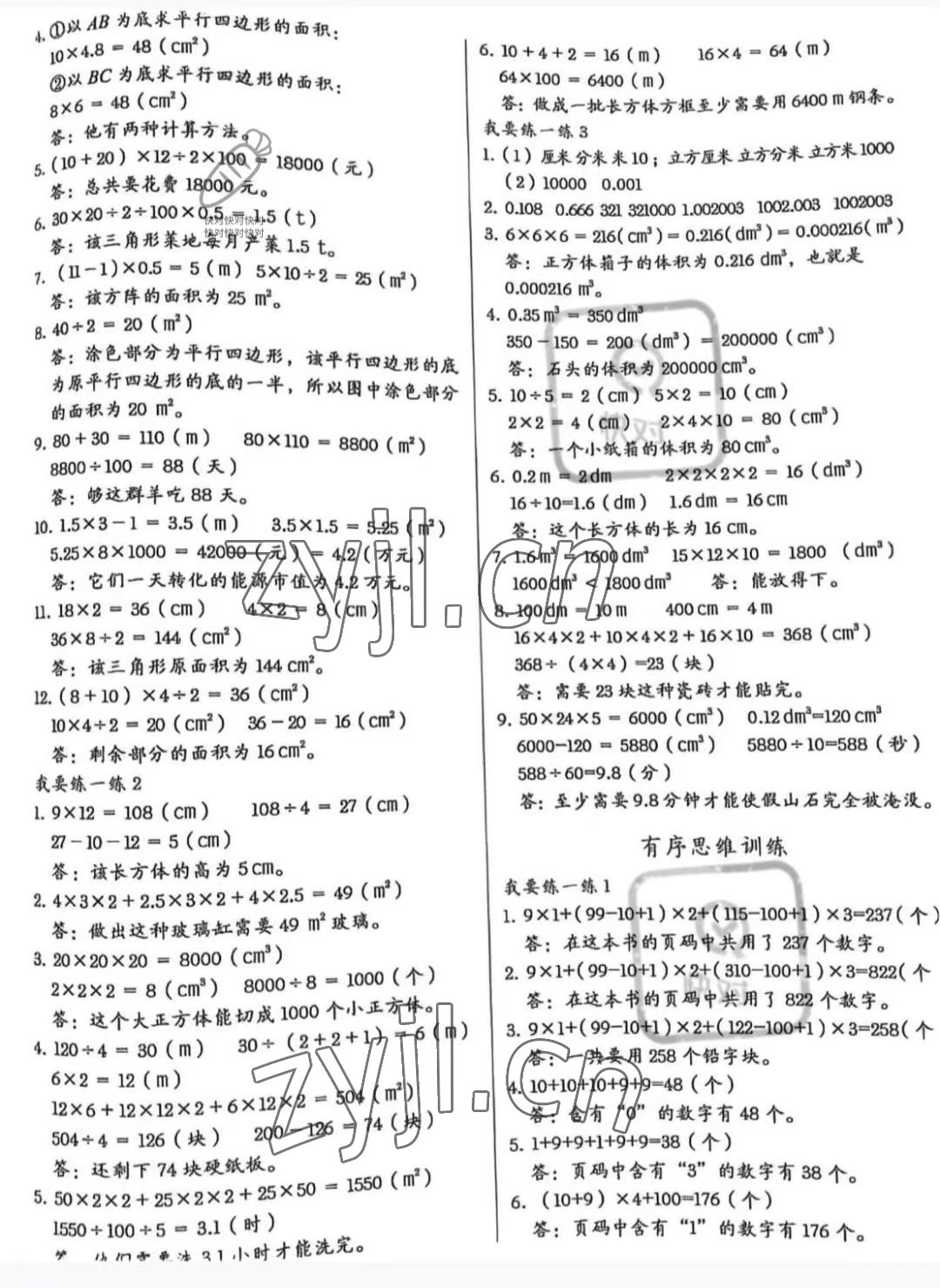 注:目前有些书本章节名称可能整理的还不是很完善,但都是按照顺序排列的,请同学们按照顺序仔细查找。练习册 2022年数学思维训练五年级人教版 答案主要是用来给同学们做完题方便对答案用的,请勿直接抄袭。