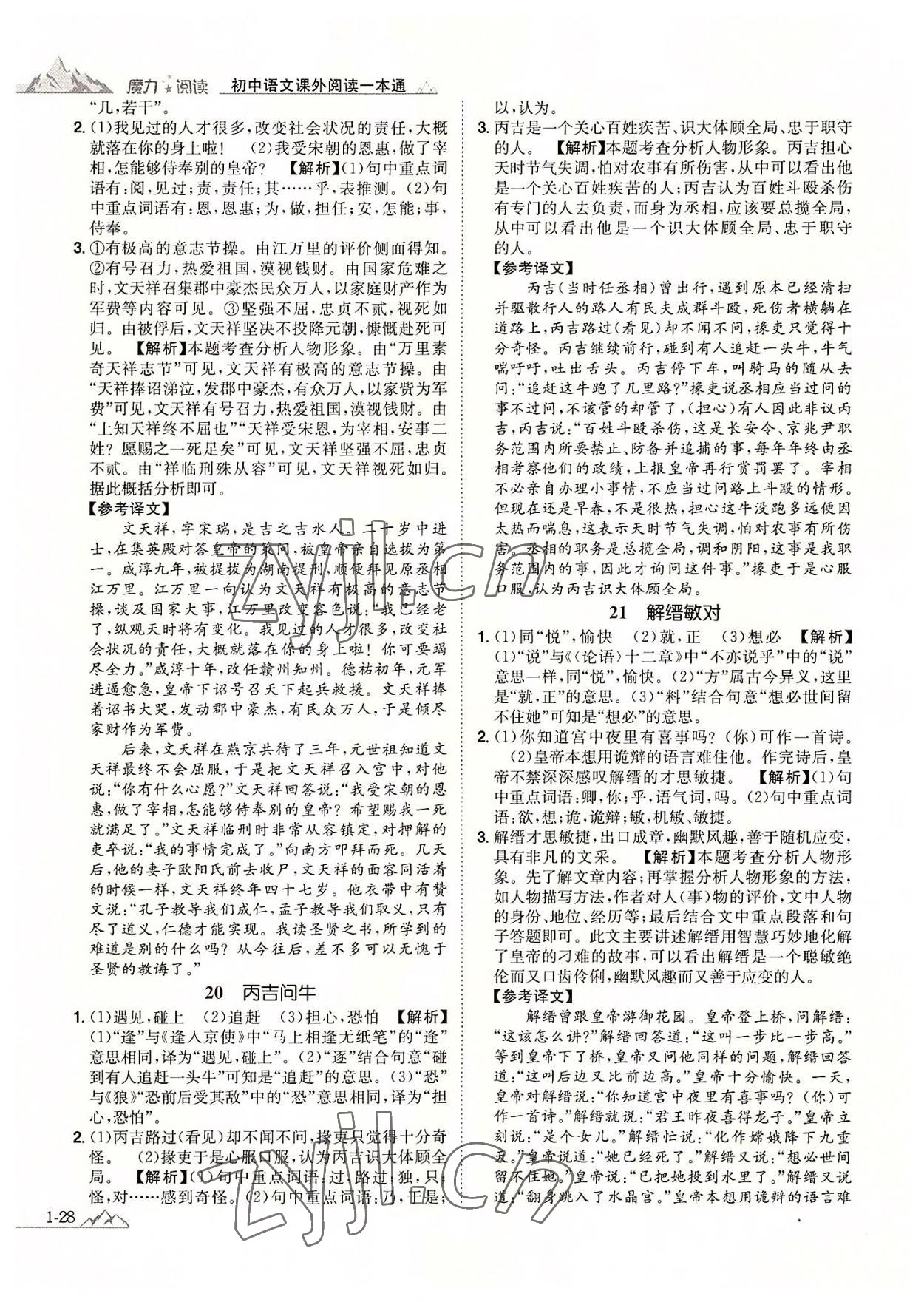 2022年魔力阅读初中语文课外阅读一本通七年级人教版