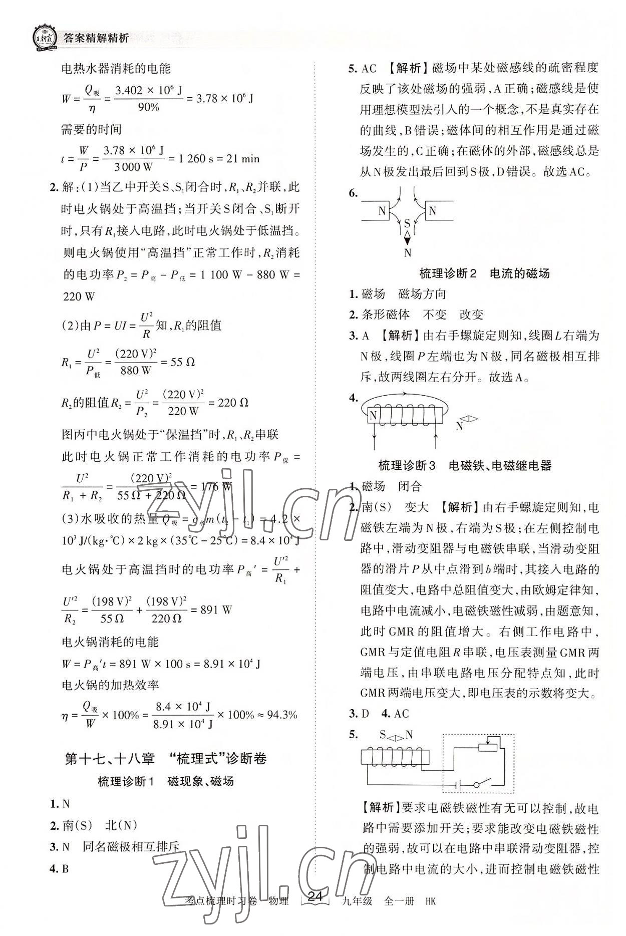 2022年王朝霞考点梳理时习卷九年级物理全一册沪科版
