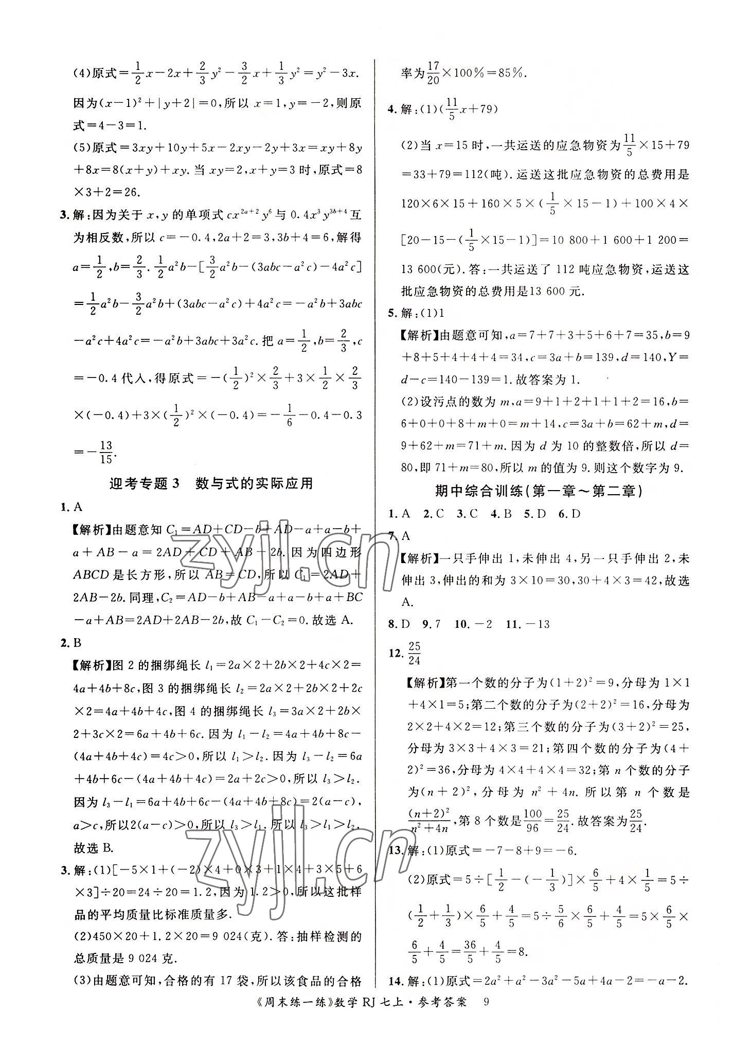 注:目前有些书本章节名称可能整理的还不是很完善,但都是按照顺序排列的,请同学们按照顺序仔细查找。练习册 2022年周末练一练七年级数学上册人教版 答案主要是用来给同学们做完题方便对答案用的,请勿直接抄袭。