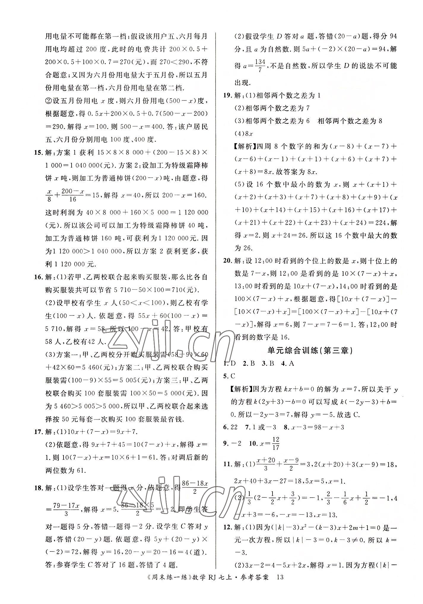 注:目前有些书本章节名称可能整理的还不是很完善,但都是按照顺序排列的,请同学们按照顺序仔细查找。练习册 2022年周末练一练七年级数学上册人教版 答案主要是用来给同学们做完题方便对答案用的,请勿直接抄袭。